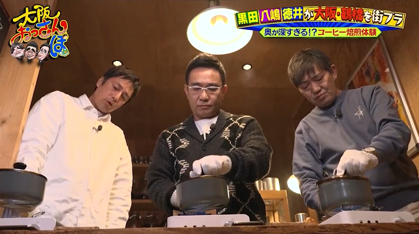そして、おっさんたちは、コーヒーの焙煎体験をさせてもらうことに。