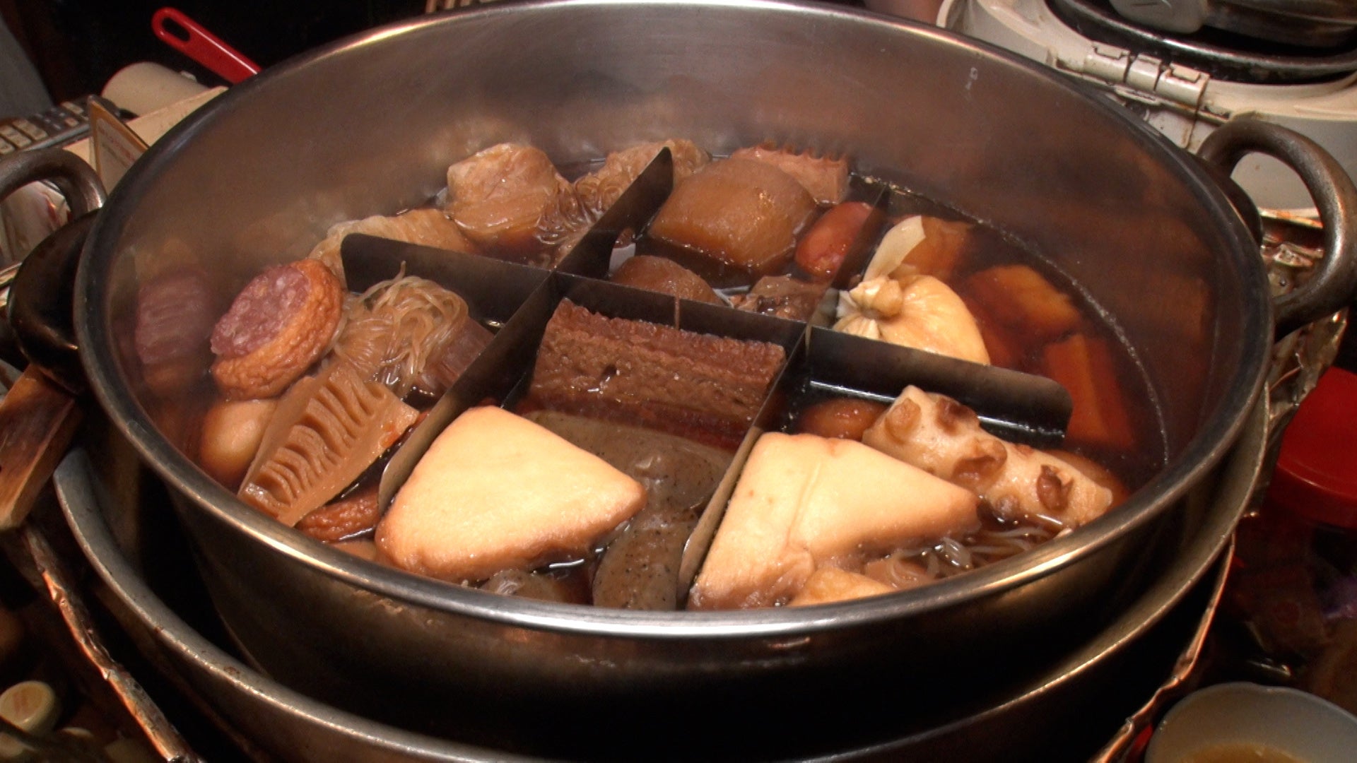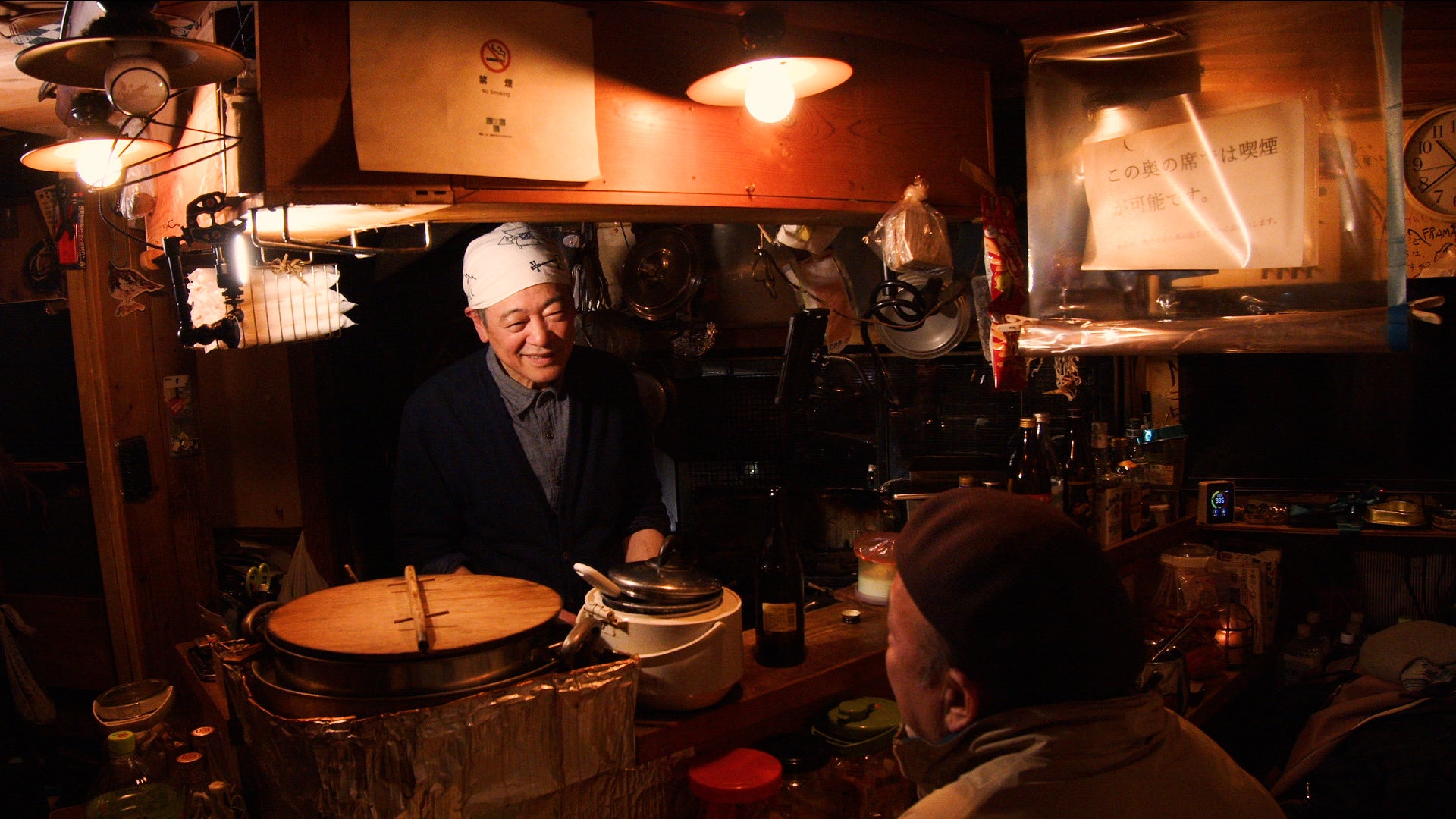 5人で満席といった店内で「狭いところで、すみません」と朗らかな笑顔で出迎えてくれるのはこの店を一人で営むマスター。お店のコンパクトさに、マスターとも常連さんとも、おのずと縮まる距離感。すぐに緊張もほぐれ、早速ビールを流しこむ。メニューはシンプルに、おでん各種・お新香・焼き飯の3つ。しみしみの大根、トマトとチーズが入った巾着、筍などを頂きながら、気になる店名や、どうして屋台の風情も感じられるのかなど、30年を越える店のヒストリーに耳を傾ける。