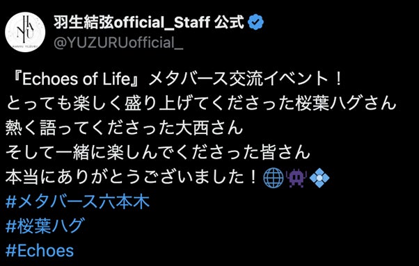 そんな大切な日である2月26日(水)に、一夜限りの限定イベント「羽生結弦 『Echoes of Life』交流イベント in メタバース六本木」が開催されました。