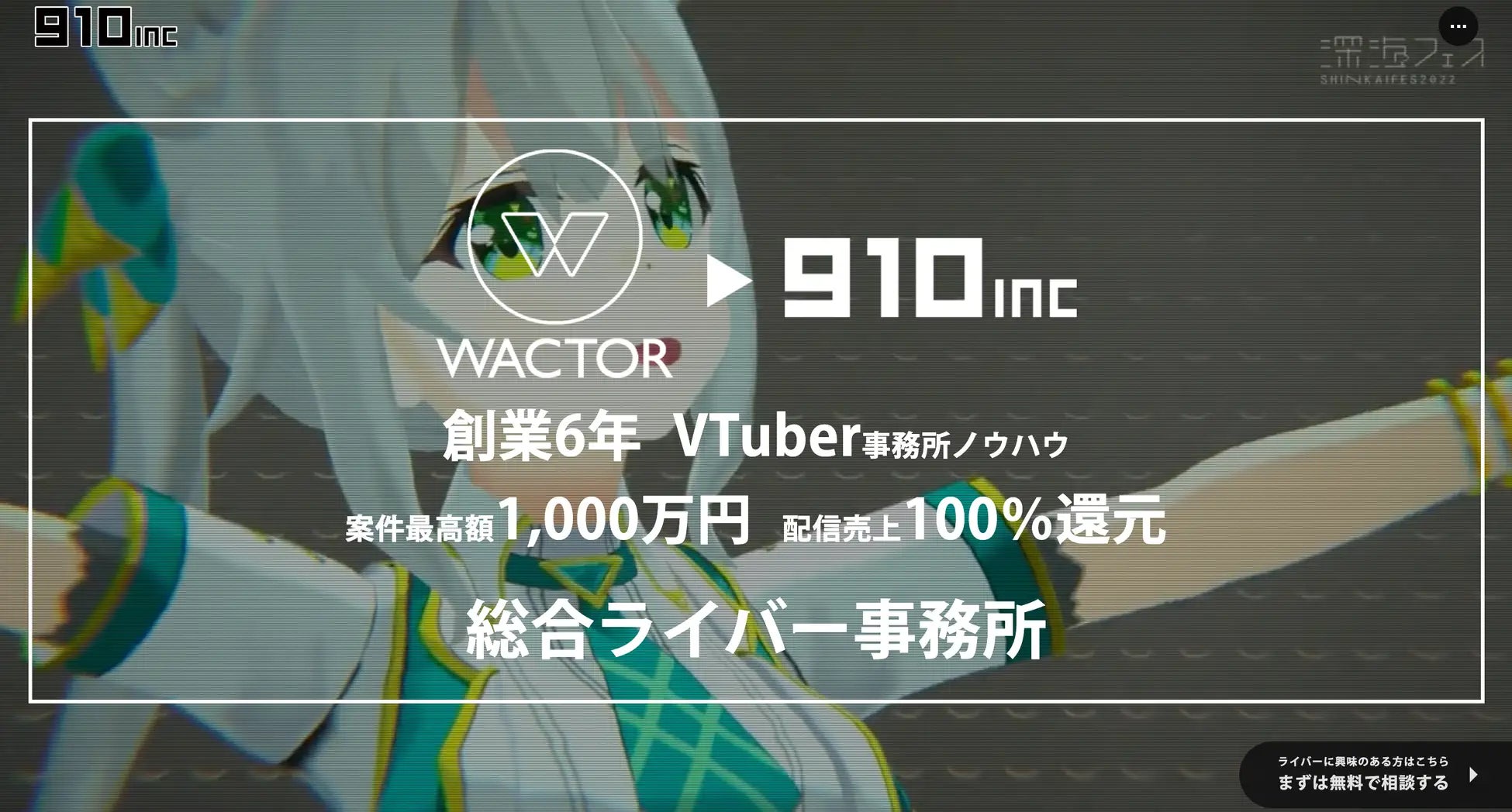 910incの前身となるWACTORはVTuber事務所として2018年に立ち上げられ、初期から日本を含むグローバル展開を方針とし、中国のbilibiliと契約し中国進出を達成、その後南米市場においてはパイオニアとして大きくマーケティングを成功させる等、グローバル展開のノウハウを持ちます。