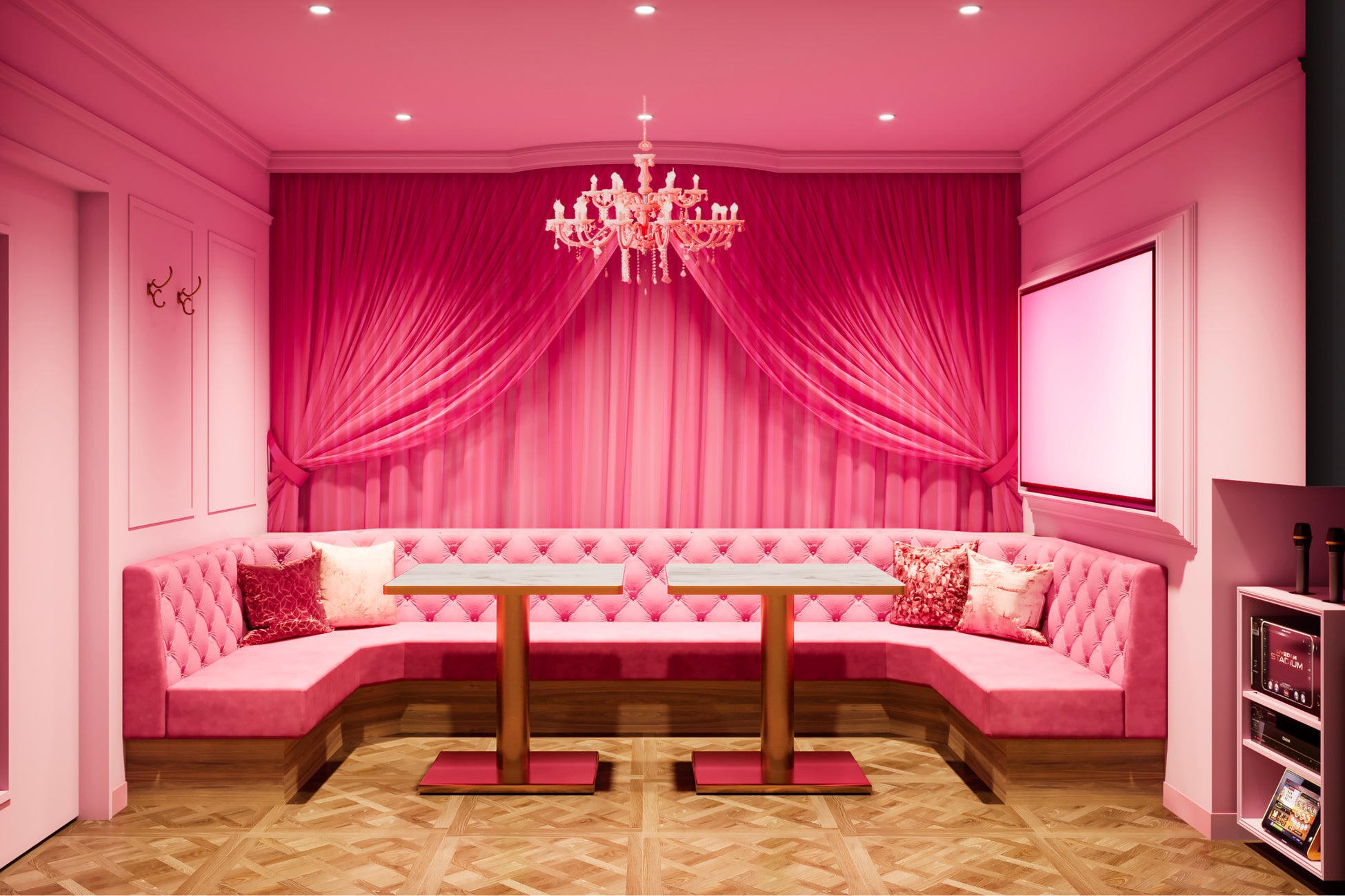 推しのメンバーカラーで楽しめる「推し色ルーム」をビッグエコーで初めて導入しました。扉や壁、ソファなどの室内装飾品を11色の豊富なカラーバリエーションで展開します。また、ラグジュアリーフロアでは、フロア全体からルーム内装品に至るまで、質感やデザインにこだわりました。高級感ある空間で優雅にカラオケを楽しむことができます。