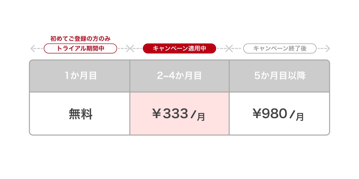 (初月は1ヶ月無料のトライアル登録が適用されます。)