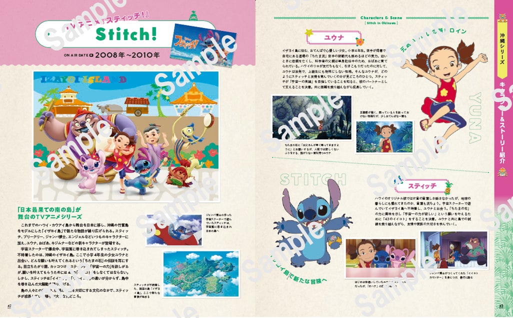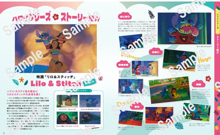 映画『リロ&スティッチ』をはじめとするハワイシリーズ、TVアニメの沖縄編シリーズ、それぞれのキャラクターとストーリーをシーン画像満載でガイド。ハワイシリーズのモデルとされているカウアイ島・ハナペペの街、ハワイ3島のおすすめ1dayプラン、沖縄シリーズの舞台のモデルとされている竹富島も紹介しています。