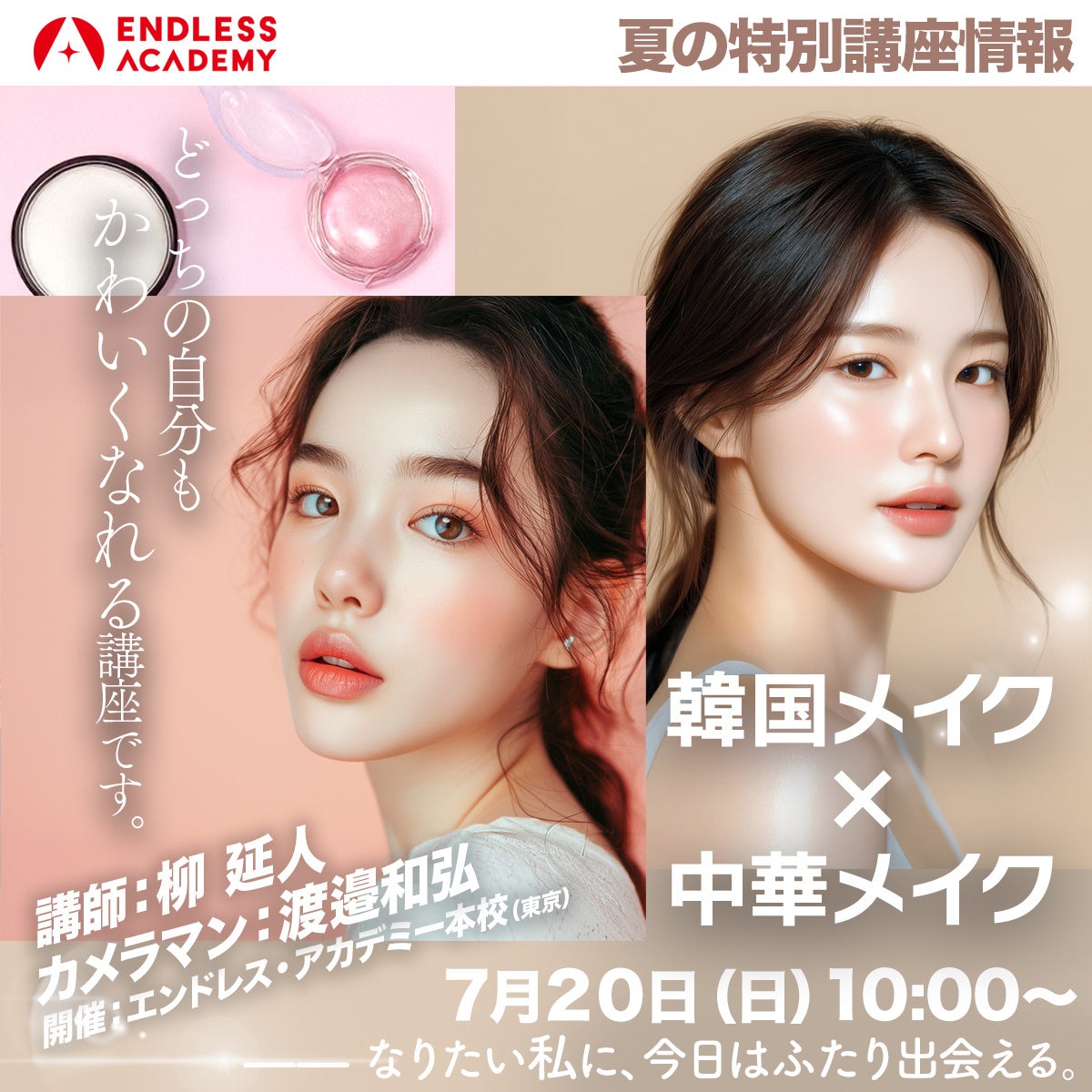 講師はヘアメイク界の第一線で活躍する柳延人(TGC、Mステなどでヘアメイクを担当。BLEA学園学院長)を迎え、『韓国メイク×中華メイク』の特別講座を開催。今のトレンドメイクを体験すると同時に、旬のプロカメラマン渡邉和弘(舞台「ブルーロック」「リコリス・リコイル」やサマソニなどのオフィシャル担当)による撮影を実施。後日、撮影データ(レタッチ込み)のお渡しがあります。