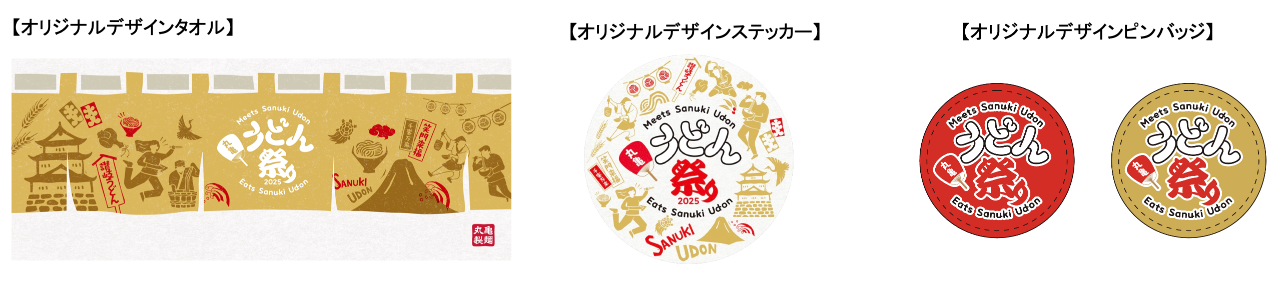 「丸亀うどん祭り2025」限定オリジナルデザインタオルなど、さまざまなグッズもご用意!