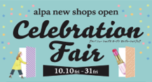 「alpa new shops open Celebration Fair」を10月31日(金)まで開催中!