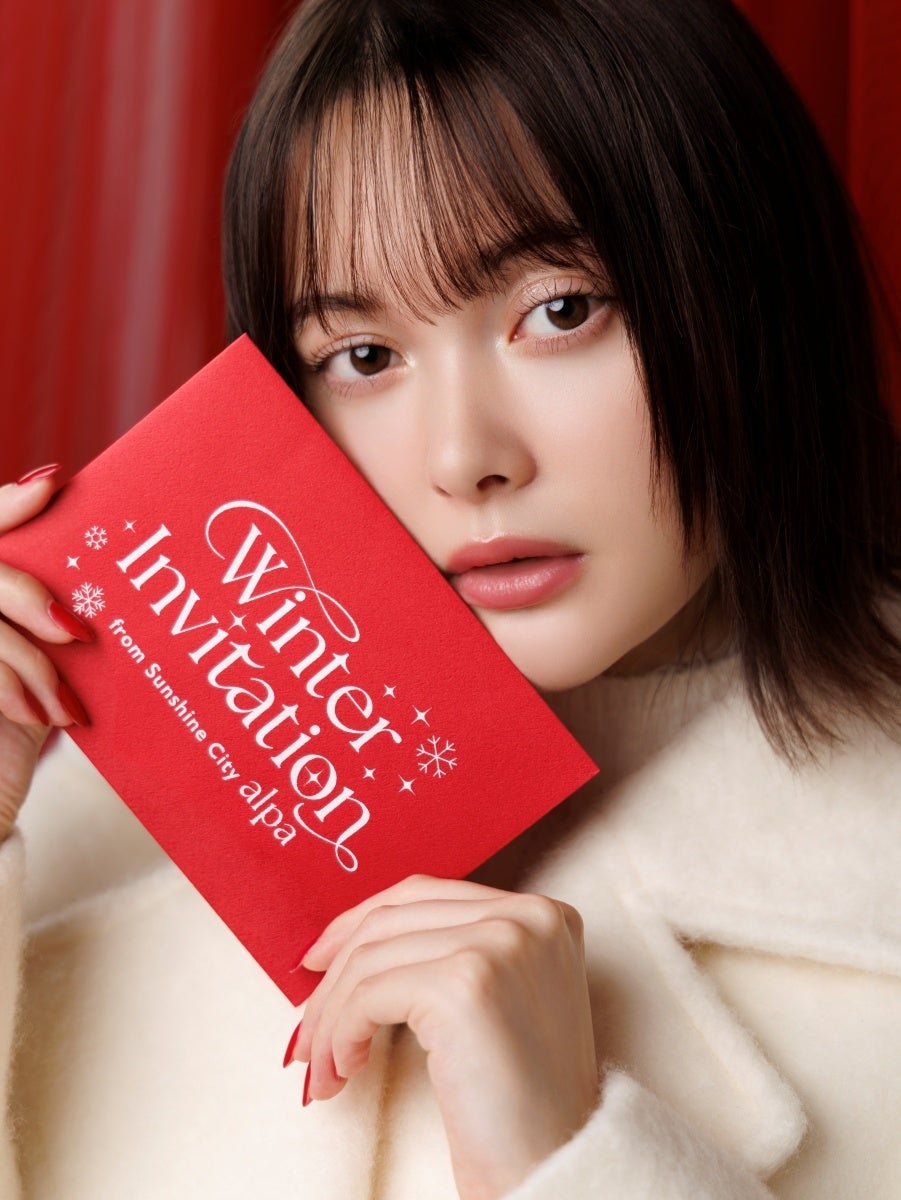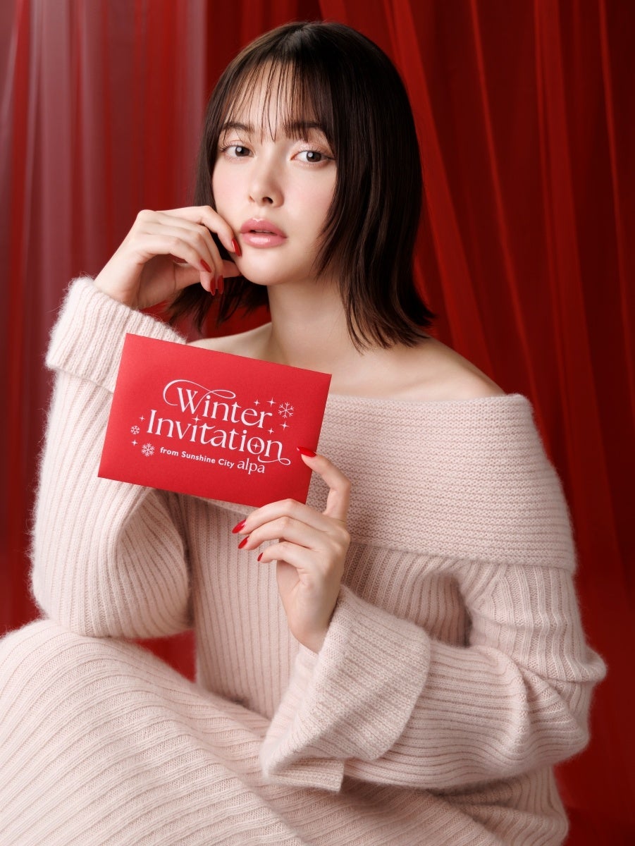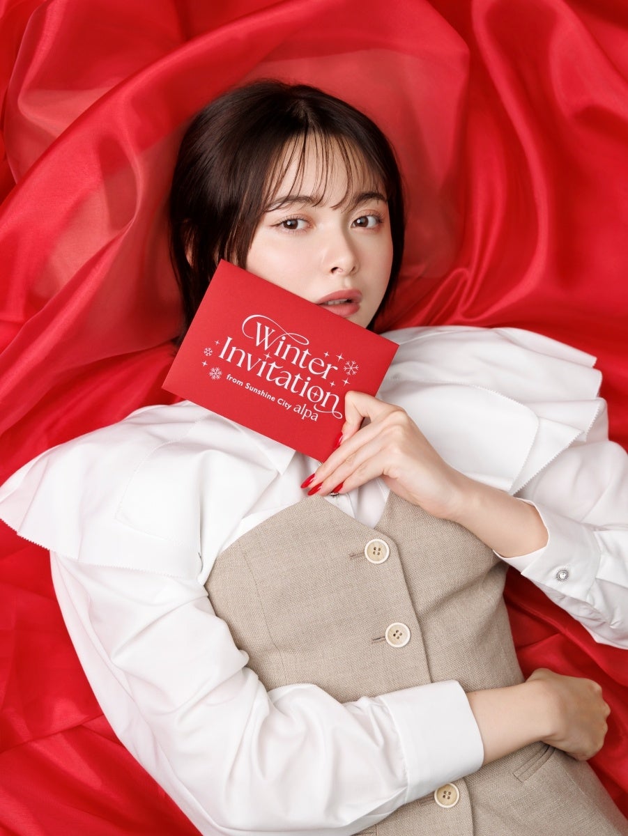 アルパのブランドカラーである赤を基調とした招待状をモチーフに、玉城さんが纏う「ちょっと背伸びした大人ガーリー」なスタイルとともに、この冬ならではのファッションの楽しみ方を提案します。