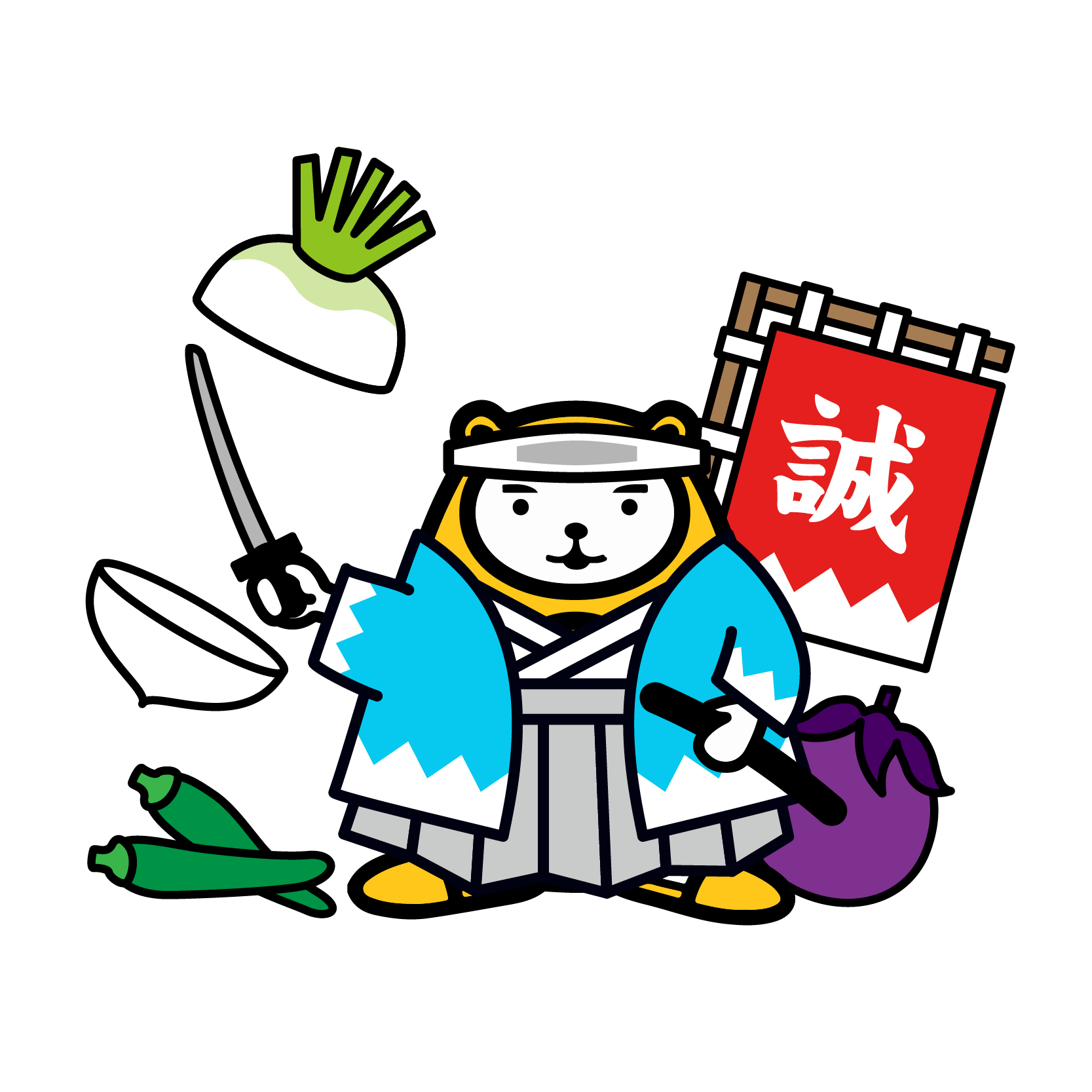 べあ~君が、包丁にみたてた剣を手に、京野菜を美しくさばく仕草、歴史と食文化の奥深さを軽やかに表現しています。