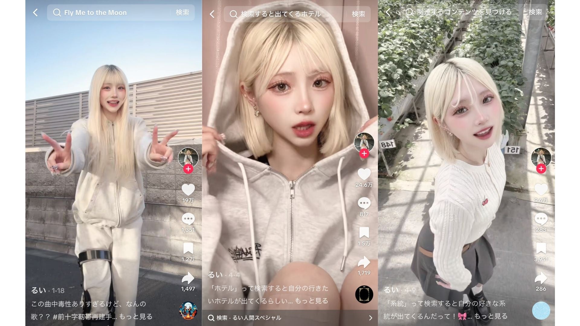 「るい」は、TikTokでのダンス動画やリップシンク動画の投稿が若者を中心に大きな話題を呼び、現在のSNS総フォロワー数は30万人を超えています。その親しみやすいキャラクターと高い表現力で、Z世代・ティーン世代を中心に絶大な支持を集めています。