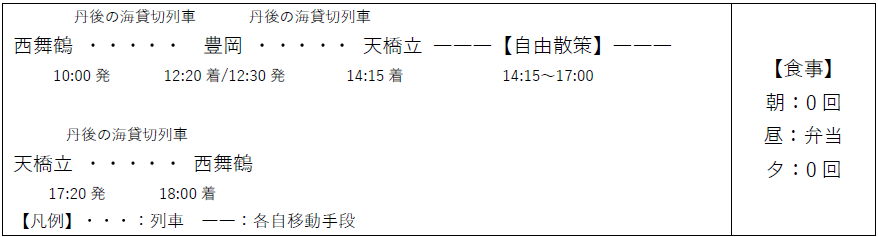(4)プラン 本ツアーのプランは以下のとおりです。