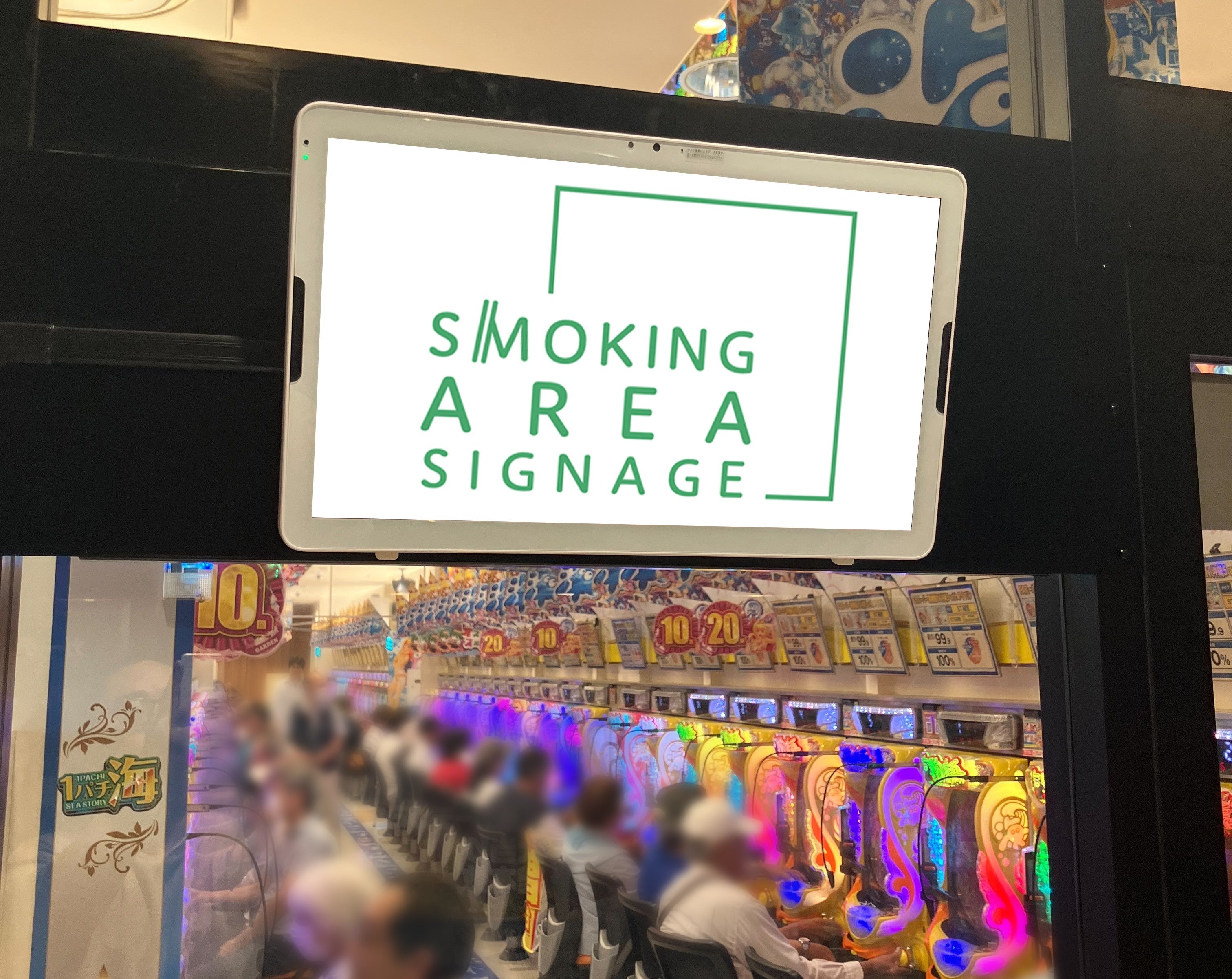 「SMOKING AREA SIGNAGE」は関東の約100店舗のパチンコホール内の喫煙ルームに設置した広告メディアです。