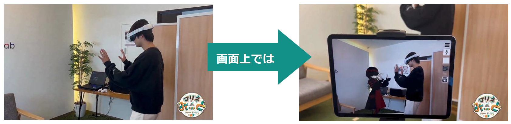 「マリネdeみーと」とは、参加者が実際の空間でVTuberと直接交流できる新感覚のイベントのことです。専用のゴーグルを装着することで、まるでVTuberが目の前にいるかのような臨場感を楽しむことができます。参加者はVTuberと一対一で会話を楽しんだり、記念写真を撮影したり、インタラクティブな体験を通じて新たなデジタルエンターテインメントの可能性を体感できます。