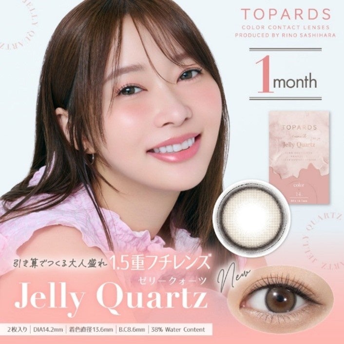 『TOPARDS』待望の新色「Jelly Quartz(ゼリークォーツ)」は、”引き算でつくる大人盛れ 1.5重フチレンズ”をコンセプトに、DIA14.2mm、着色直径13.6mmのナチュラルなサイズ感で、ぬけ感のあるラフなLineが新しい!ぐるっと囲わない、「ぬけ感細フチデザイン」と、まるでゼリーみたいなぷるぷるな瞳になれる「透明感ベージュブラウン」が特徴です。