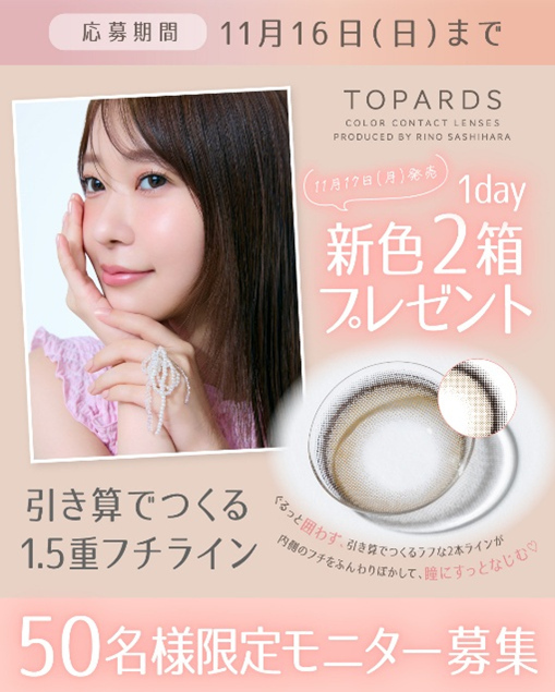 指原莉乃プロデュースカラコン『TOPARDS』、新色は”引き算でつくる大人盛れ 1.5重フチレンズ”