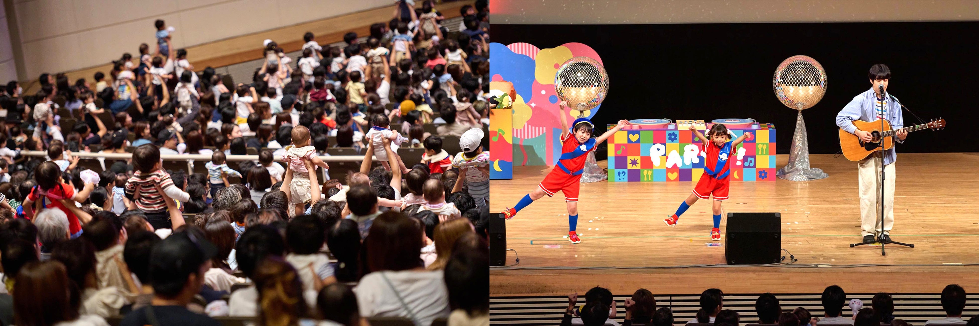 今年のぷしゅソングフェスは、番組で人気ダンスコーナーを担うキャラクター「シナぷりちゃん」が主催するダンスパーティーの世界にみなさんをご招待!すでに開催終了した大阪・埼玉公演では、会場にずらりとベビーカーが並び、0歳からの赤ちゃんや子どもたちをはじめ、たくさんのファミリーにご参加いただきました。
