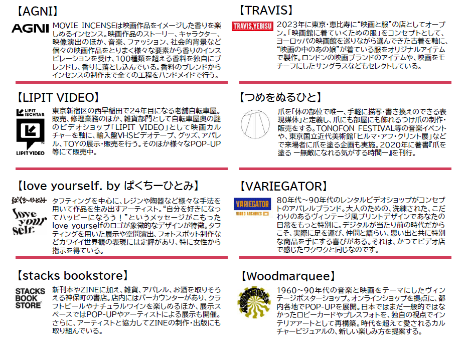 それぞれの角度から“映画を愛する人”の感性を刺激するショップが集結します。