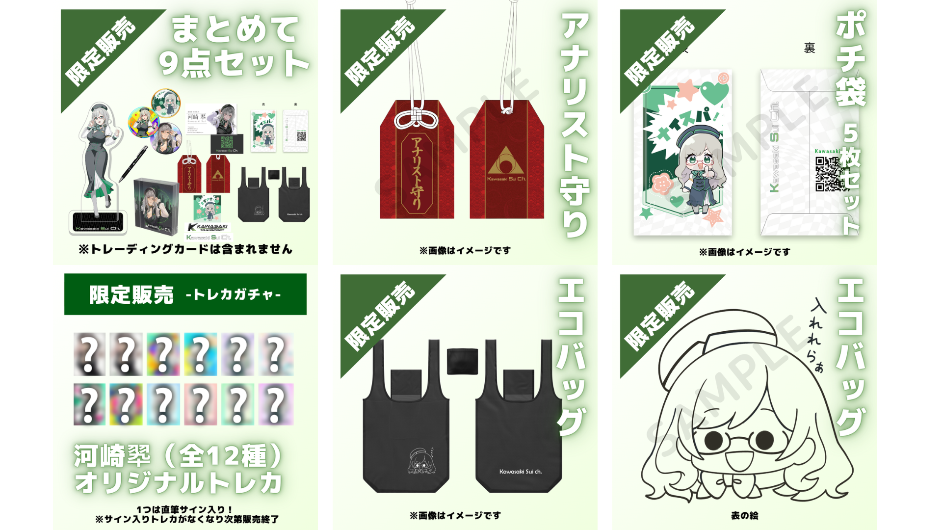 本企画では、直筆サイン入りの当たりが封入されたオリジナルトレーディングカード(全12種)をはじめ、アクリルスタンド、耐水ステッカー、ボールペン、エコバッグ、お守りなど、全10アイテムをラインナップしています。