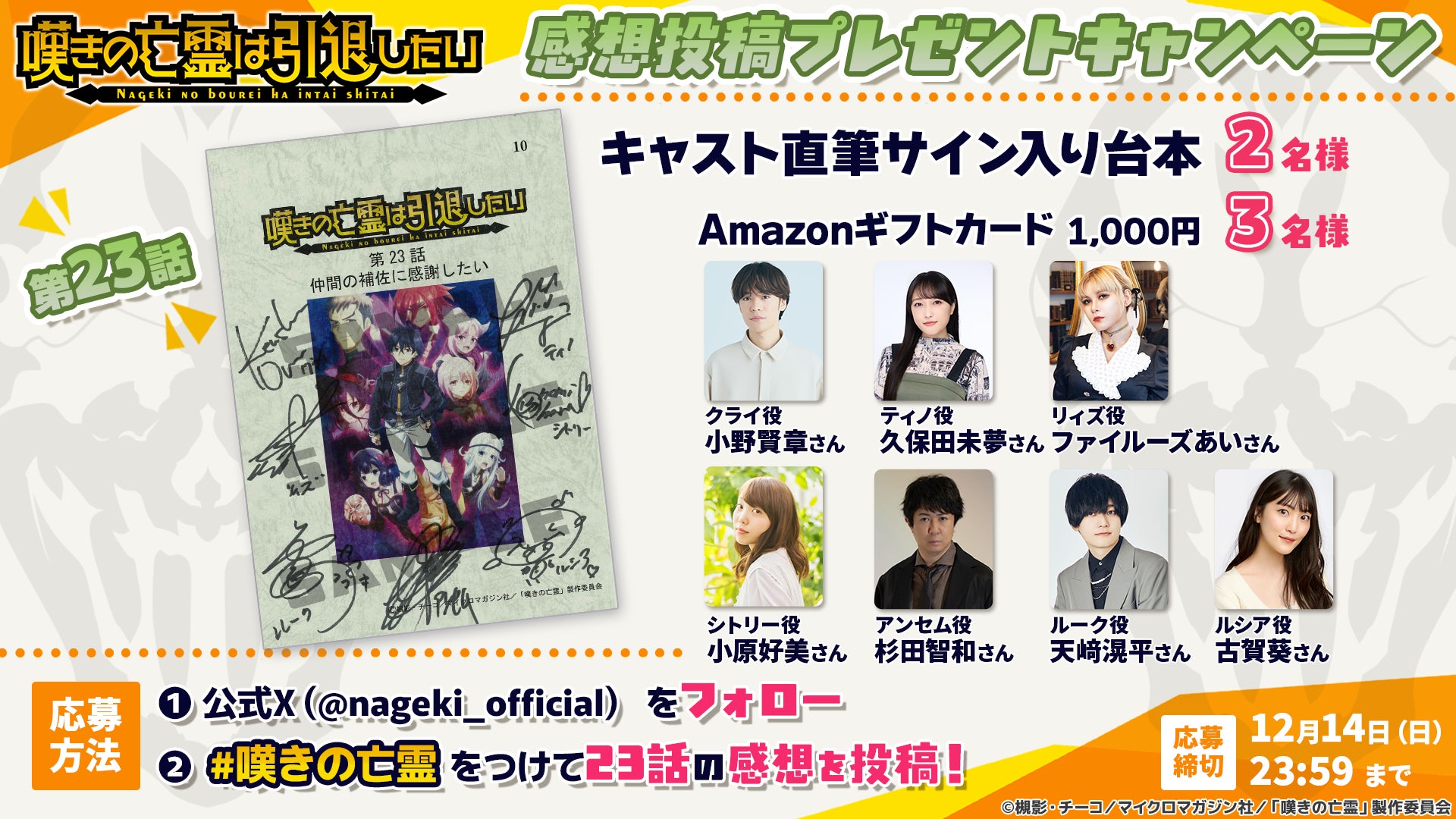 第23話の放送を記念して、ストグリ&ティノのキャスト陣直筆サイン入り台本やAmazonギフトカード1,000円分が当たるキャンペーンを開催します。