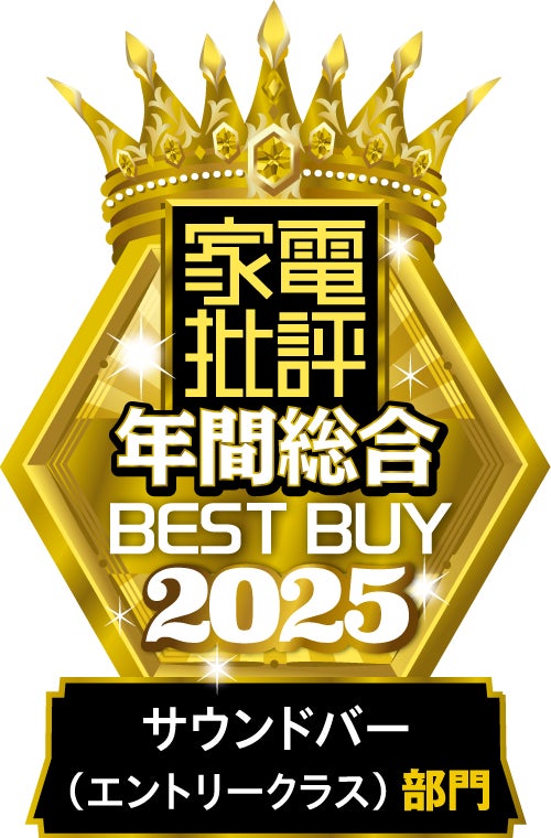家電批評年間総合ベストバイ サウンドバー(エントリークラス)部門においてNo.1の評価を獲得。原音をありのままに再生するPureモードの完成度とサラウンド感が絶賛されています。
