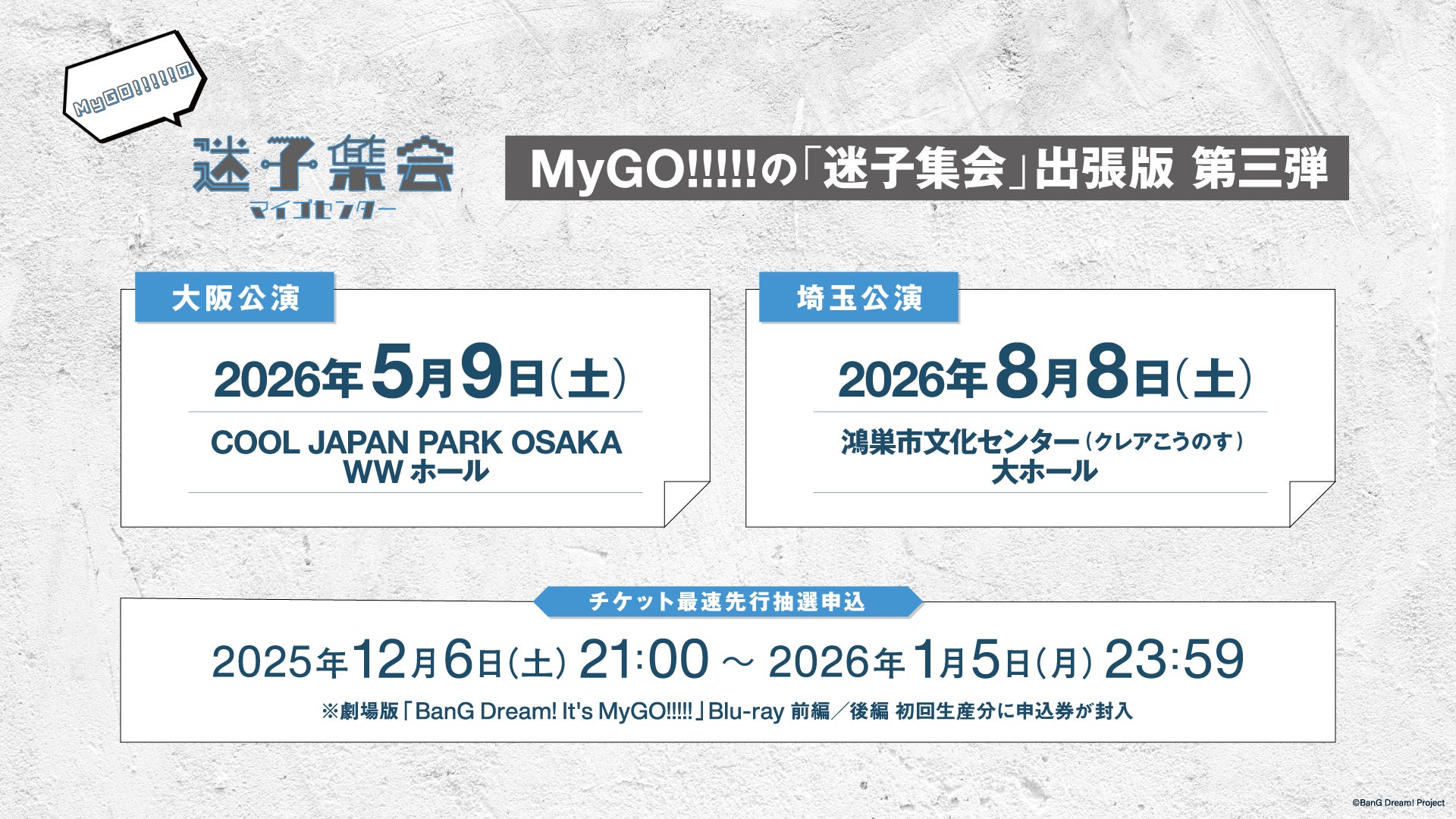 ■【新情報】MyGO!!!!!の「迷子集会」出張版 第三弾が大阪・埼玉にて開催決定