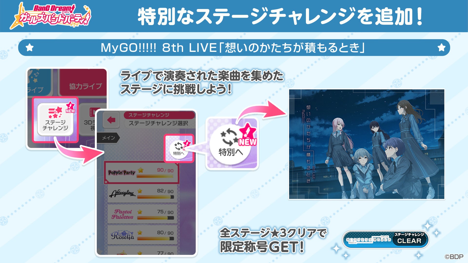 ■【新情報】ライブで演奏した楽曲を集めた特別ステージが、「ガルパ」ステージチャレンジ機能に追加決定