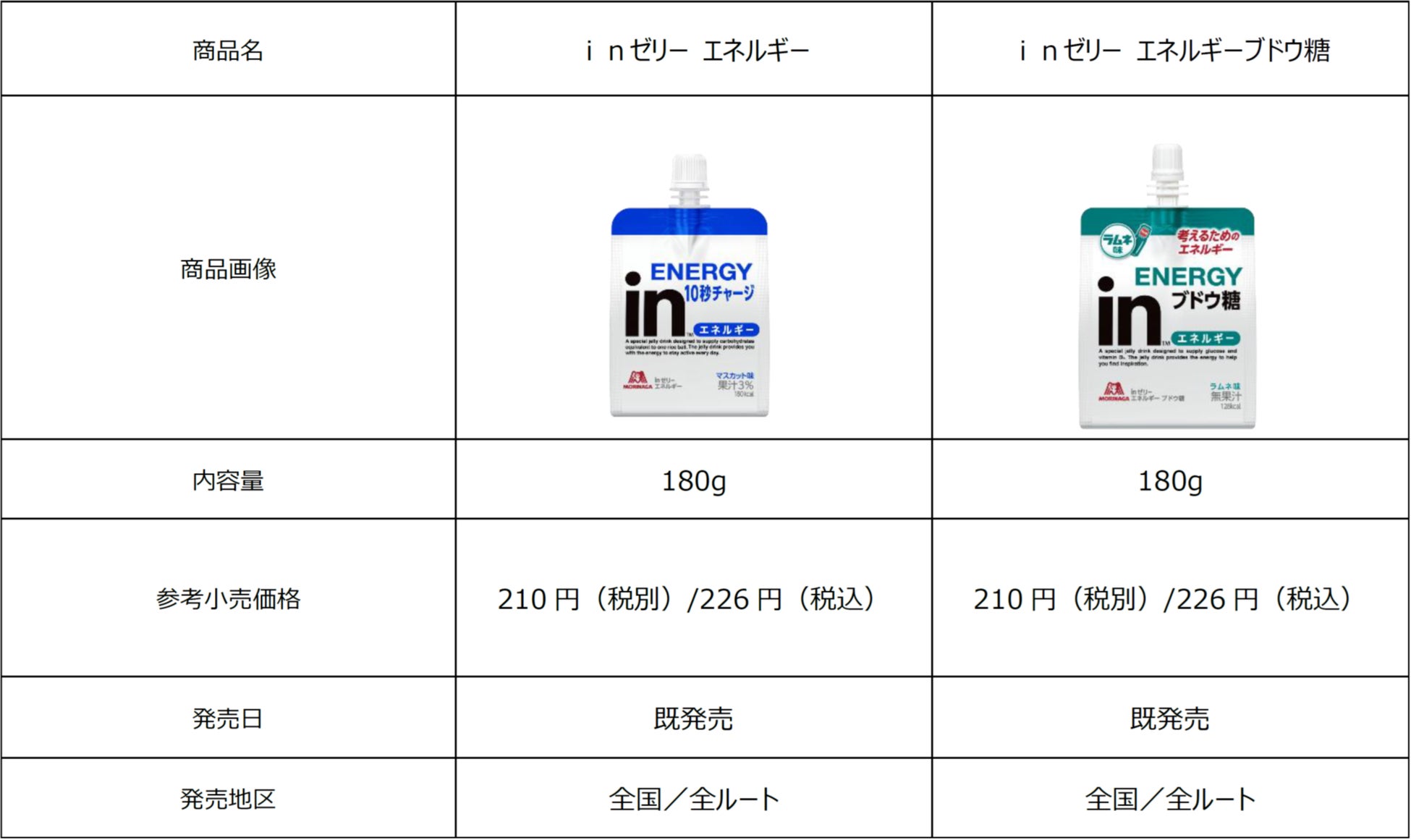 「inゼリー エネルギー」「inゼリー エネルギー ブドウ糖」商品概要