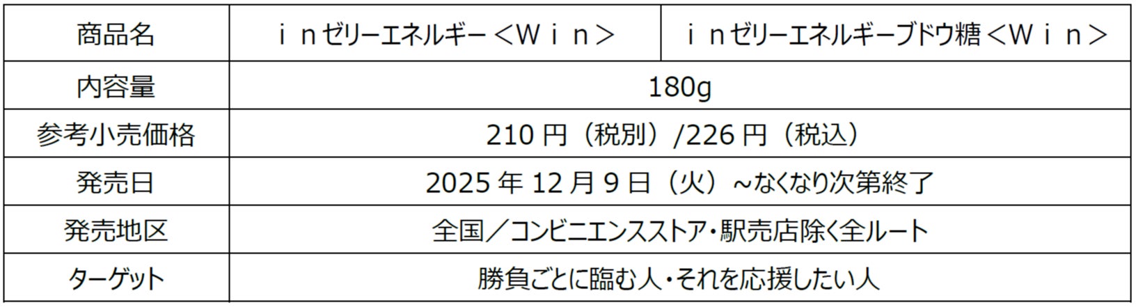 「inゼリー」ブランドは、受験や部活などのここぞという勝負事に挑む人たちを長年応援しており、「受験などの勝負ごとで、いつも隣にいる相棒でありたい、お守りのような存在でいたい」と考え、「inゼリー」の“in”を活かし、”Win”を訴求した特別パッケージ「inゼリーエネルギー<Win>」「inゼリーエネルギーブドウ糖<Win>」を2025年12月9日(火)より期間限定で再発売いたします。