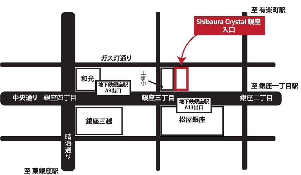 住所:東京都中央区銀座3-5-9 ShibauraCrystal(シバウラクリスタル)銀座