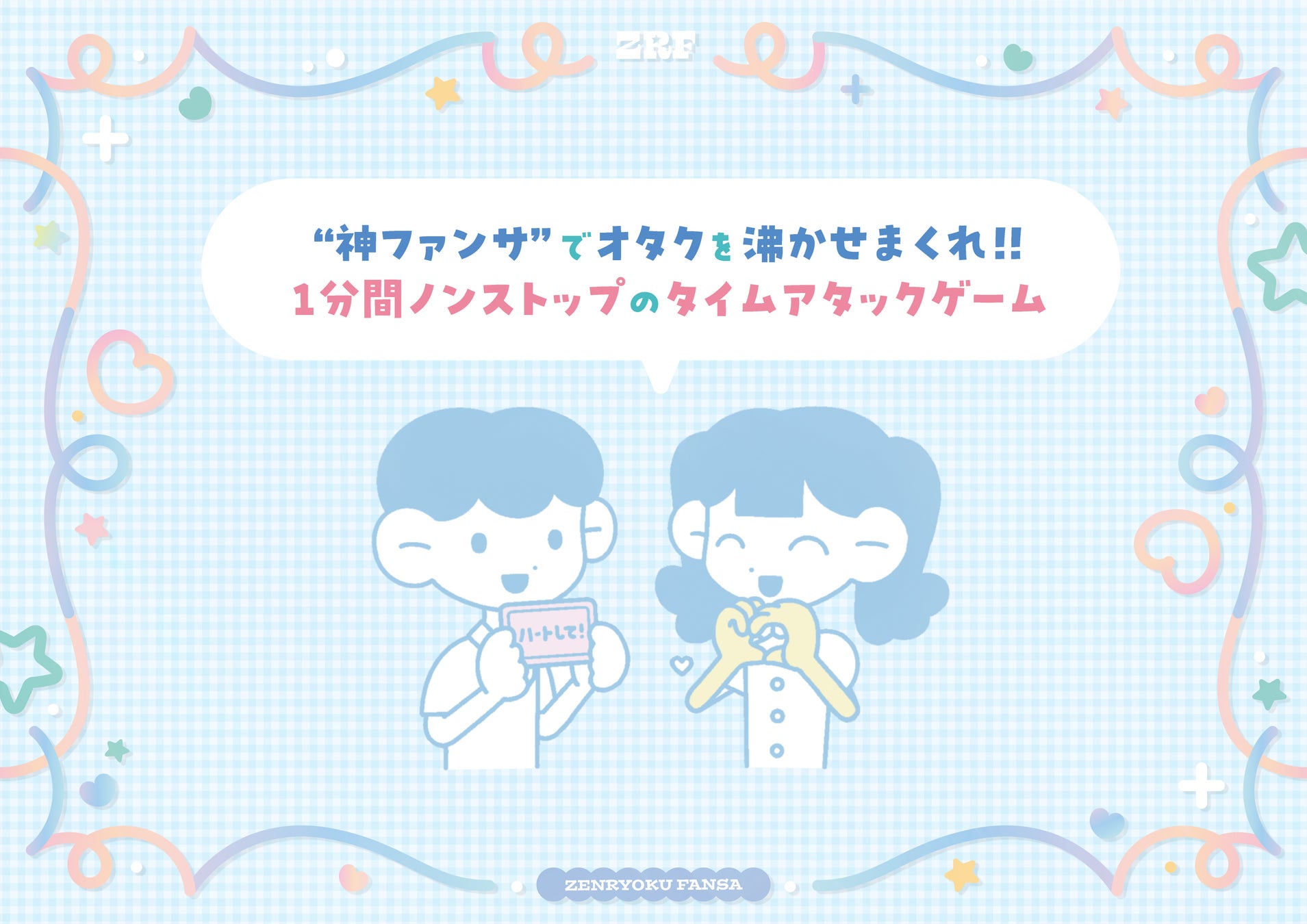 「#全力ファンサ」とは、1分間でどれだけ多くの“ファンサ”ができるかを競うタイムアタックゲーム。アイドルになりきって「指ハート」「ハイタッチ」などのファンサお題をこなしてファン(役)を沸かせ、最も多い得点を得たプレイヤーが勝者となります。