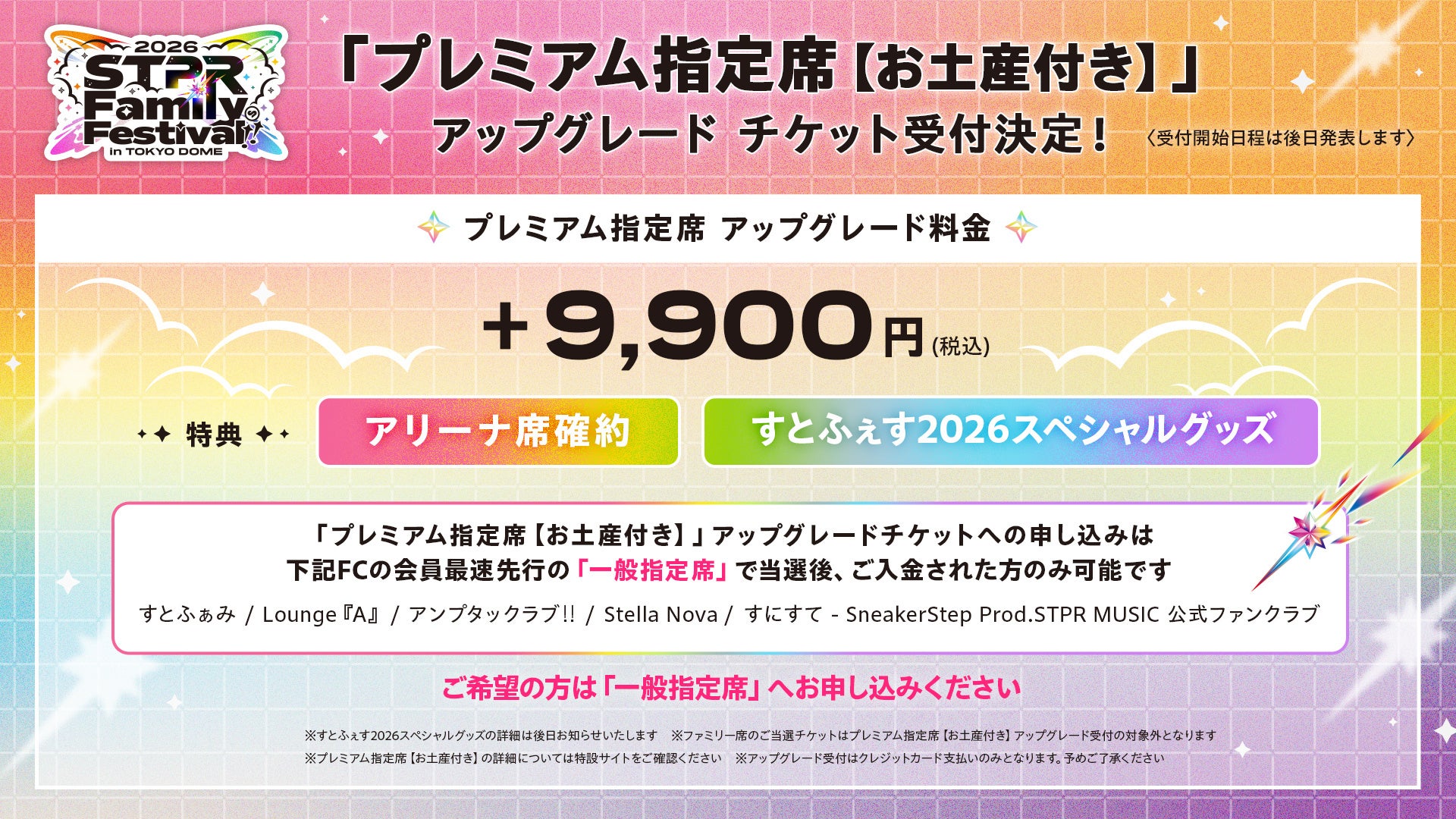 ※チケットの申し込みにはいずれかのファンクラブ加入が必要です。