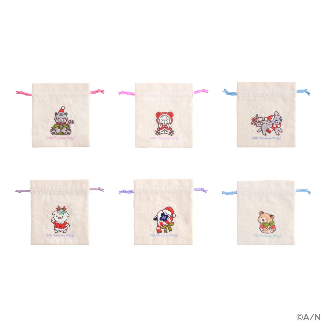 グッズラインナップは刺繍入り缶バッジ、刺繍巾着、ぬいぐるみマスコット、オーナメント風マスコット、キーホルダーの5種類。