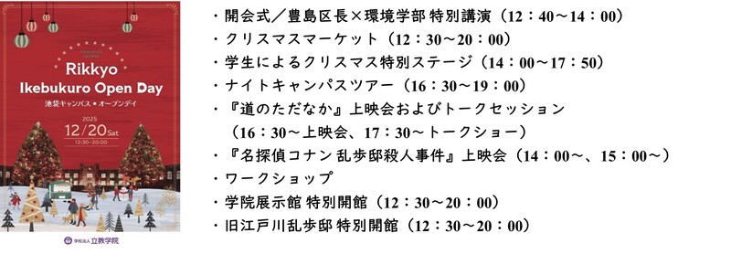 学校法人立教学院(東京都豊島区、理事長:福田裕昭)は、12月20日(土)に立教大学池袋キャンパスにおいて、「池袋キャンパスオープンデイ2025」を開催します。