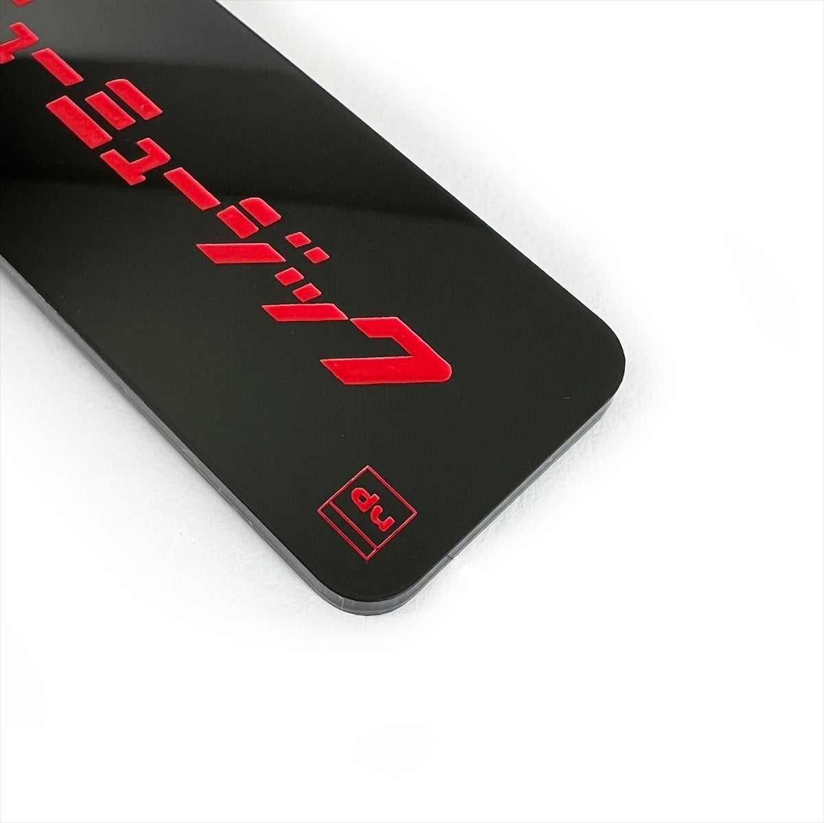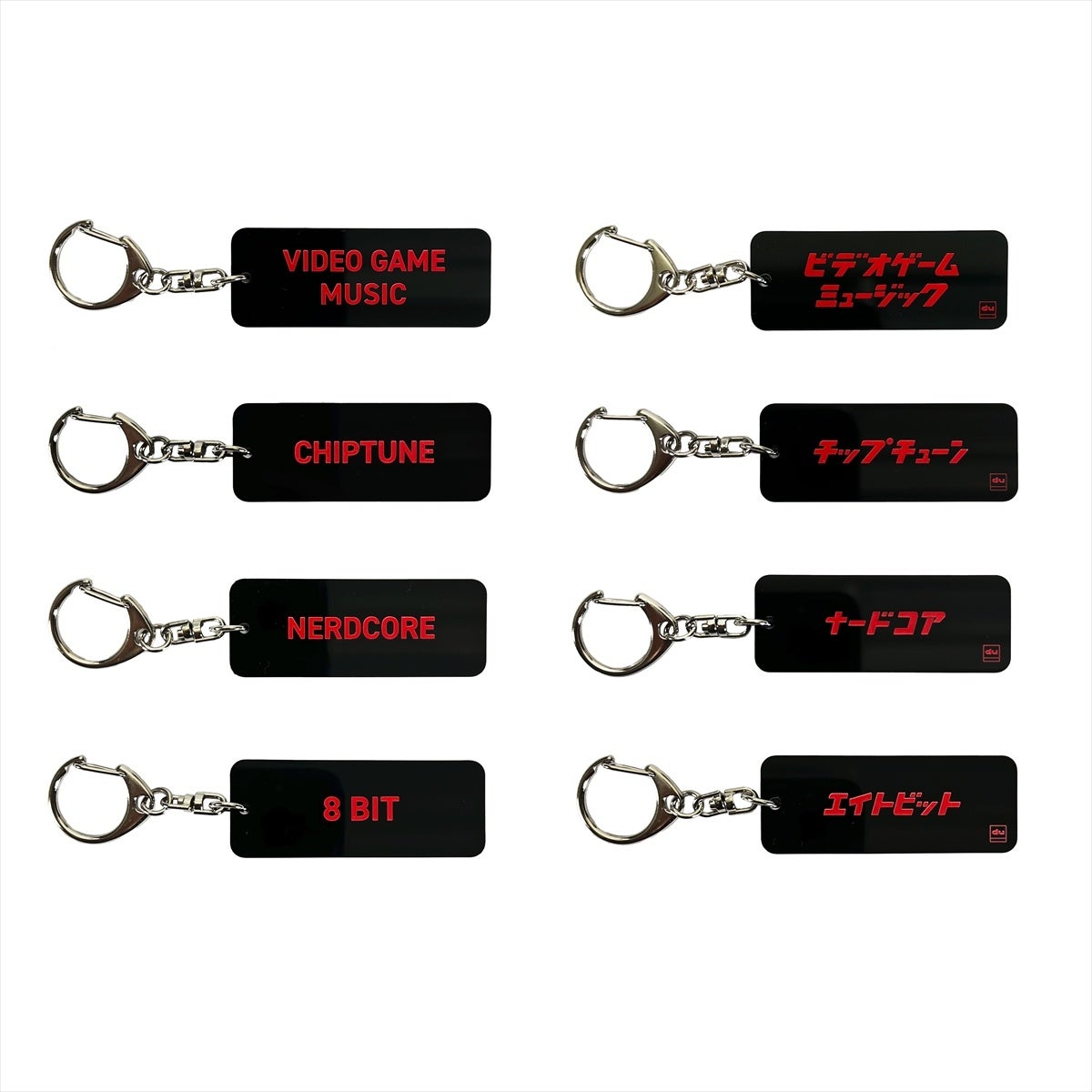 黒地に赤でジャンル名を刻んだミニマルなデザイン。主張しすぎないサイズ感と質感で、鍵やバッグにそっと添えるだけで、音楽と一緒にいる感覚を楽しめます。