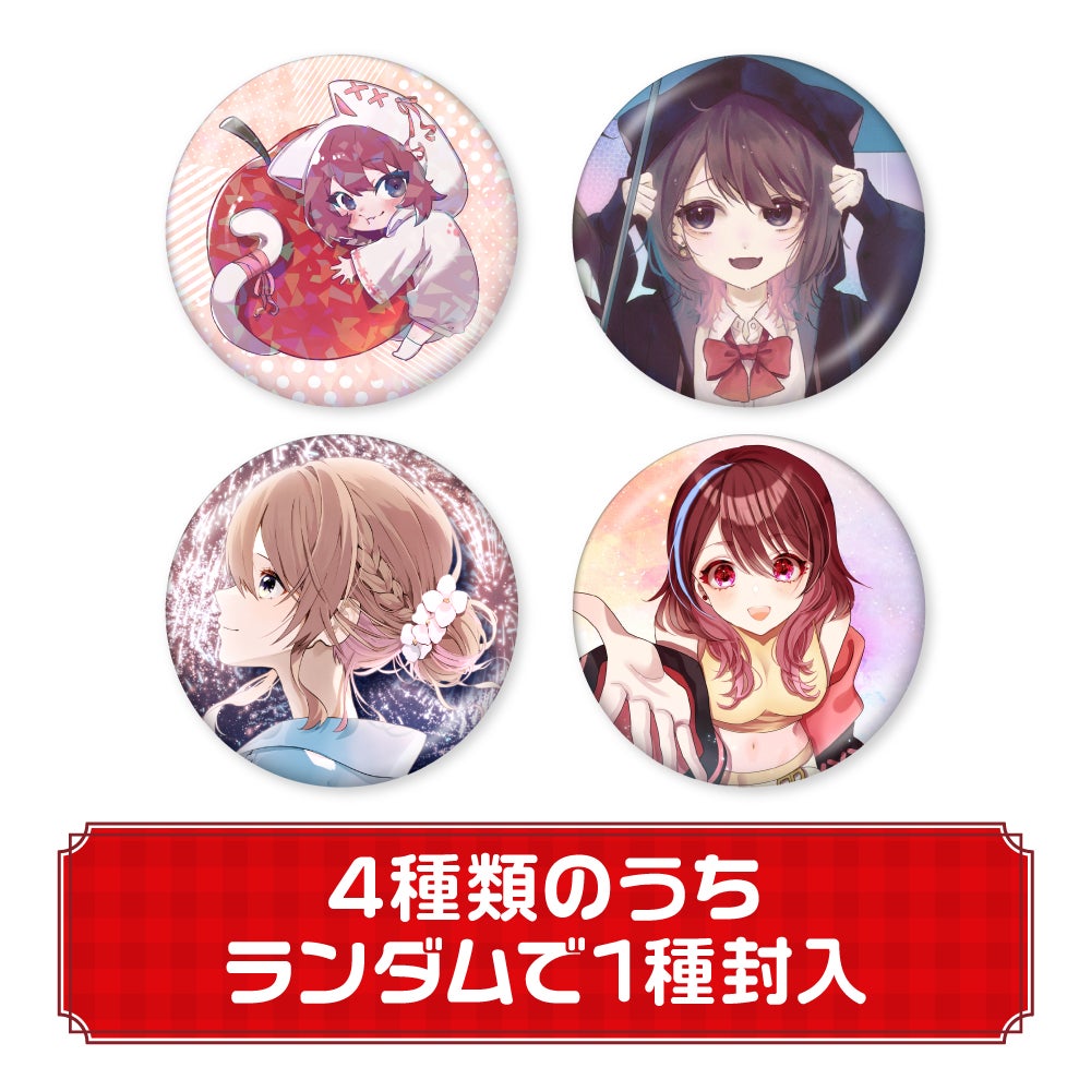 りんごもち林檎さん&2025年に投稿した歌ってみたをモチーフにしたランダム缶バッジ。
