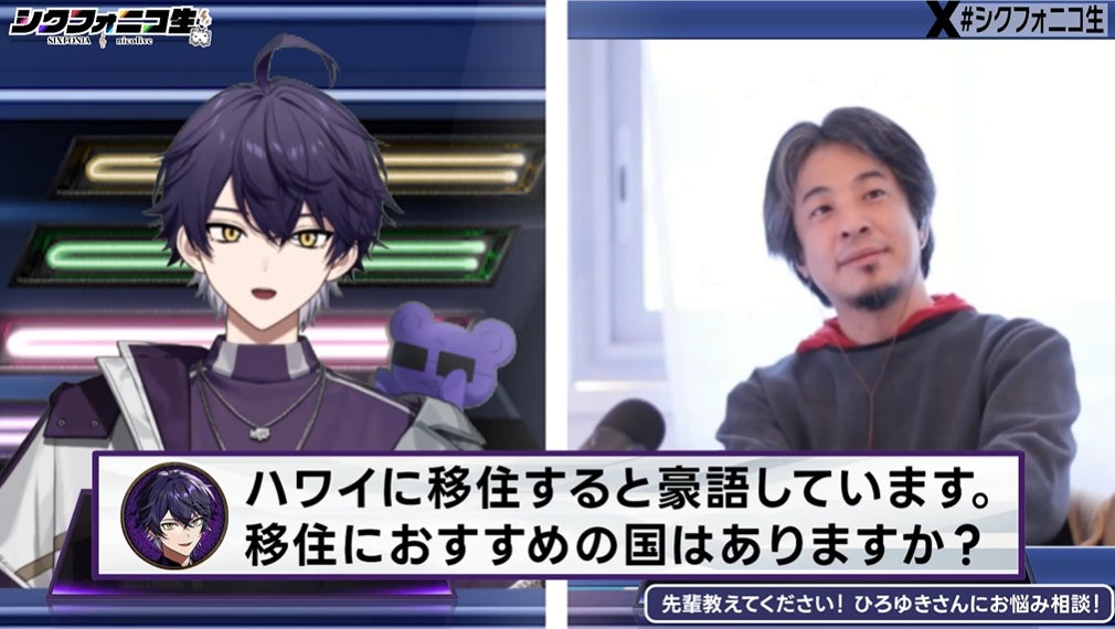 本番組は、2.5次元タレントグループ「シクフォニ」の初冠配信バラエティ番組です。ゴールデンボンバーの鬼龍院翔が番組MCを務め、シクフォニメンバーが様々な業界の先輩方と対面し、その魂の極意を学んでいきます。第2回目となる今回は、ゲストにひろゆきを迎え、ここでしか見られないトークを展開しました。