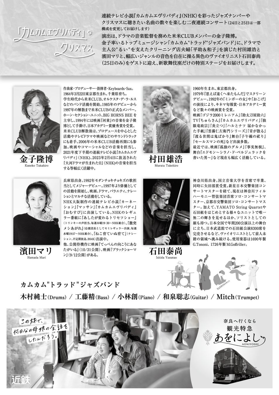 本公演は連続テレビ小説『カムカムエヴリバディ』(NHK)を彩ったジャズナンバーや、クリスマスの名曲をお届けする二夜連続コンサート。