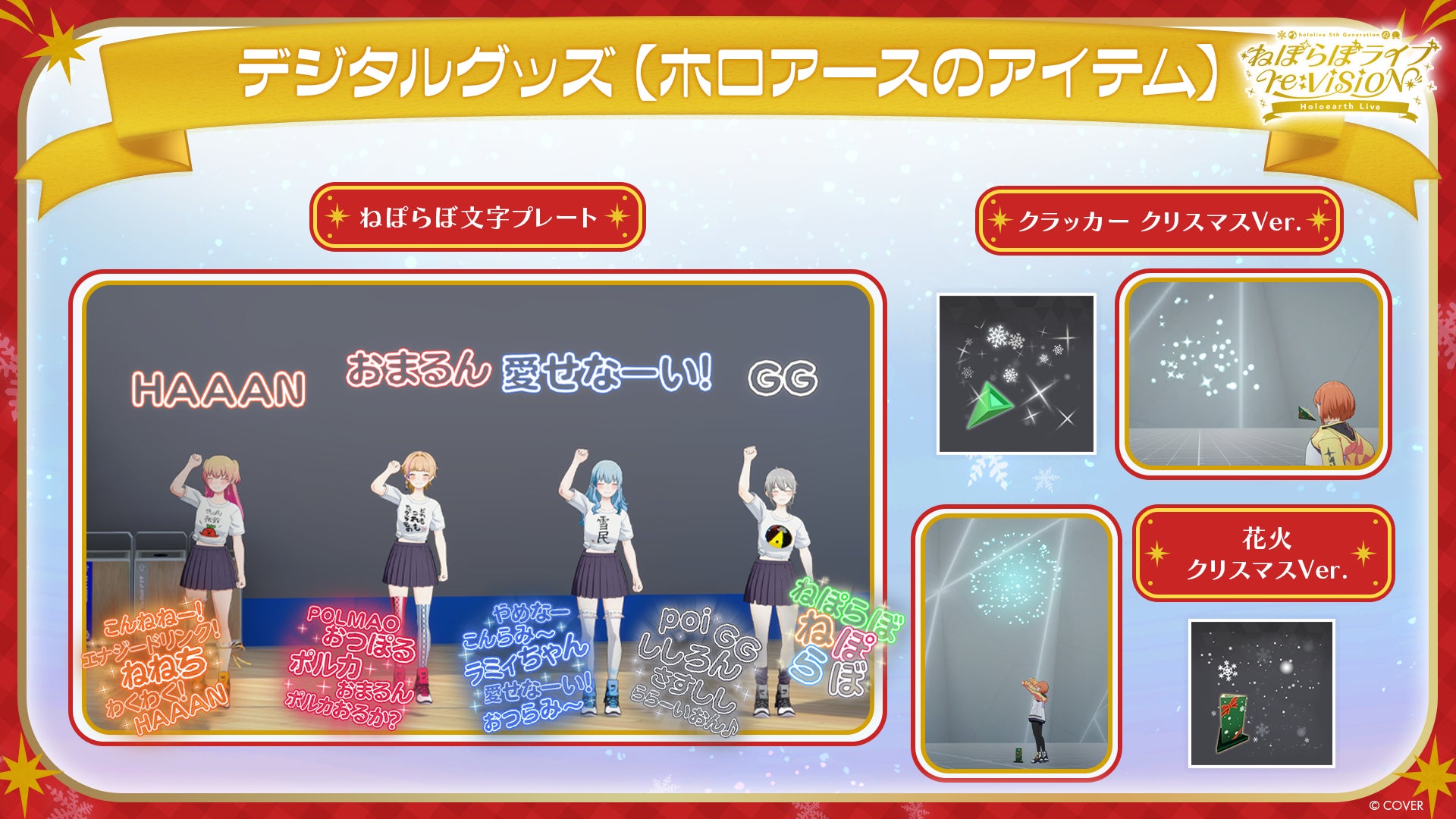 本公演開催に合わせ、ホロアース内にてねぽらぼライブ re:VISION Holoearth Liveのデジタルグッズが発売開始しました。