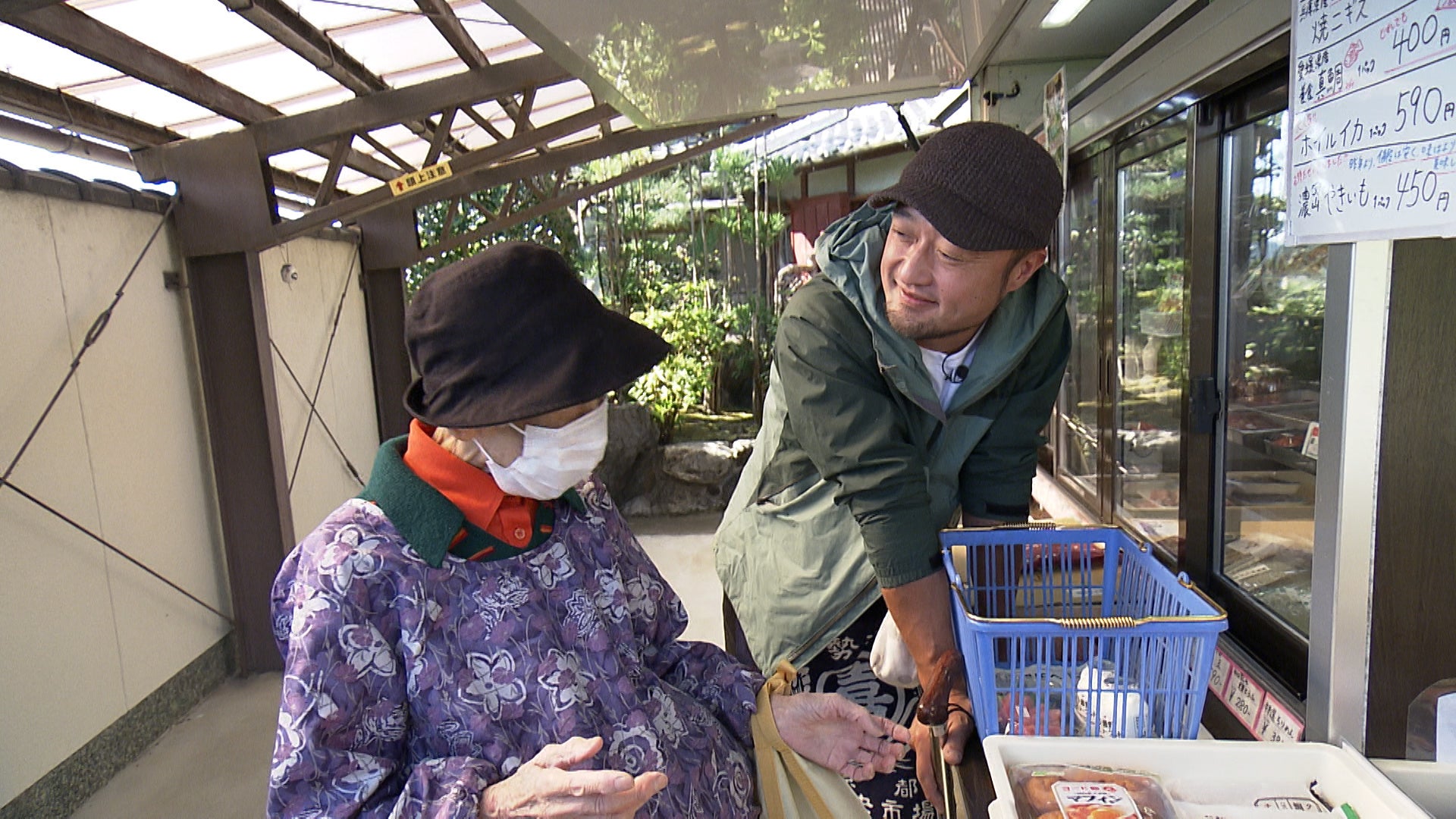 京都府亀岡市内を走る1台のトラック。その正体は「移動スーパー」。そこには新鮮な魚や惣菜、お菓子の数々、多くの商品が並びます。最寄りのスーパーは歩くと30分以上かかるため、この地域のお年寄りにとてもありがたい存在なのです。