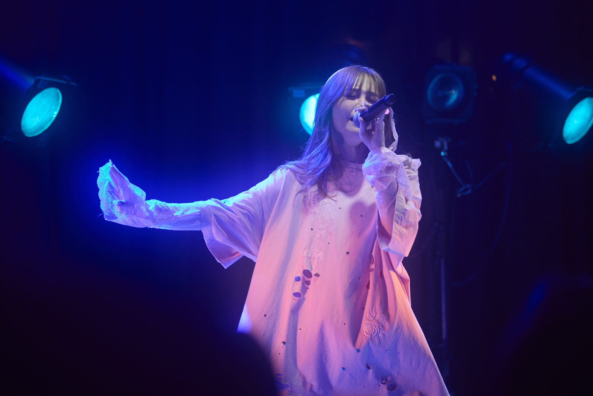 その後も、たくさんのファンに愛されている「lonely」、前日のリクエストを受けて追加された「夜明けがくるまで」を披露。そして、「ハートを壊されたことがある人もない人も、この曲を聴いて『ふーん』って思ってもらえればいいと思います。恋愛なんて別にしなくてもいいし、私のことを応援したかったらしていいし、離れたいと思ったら離れてくれていい。音楽は自由だと思ってます。だけど、ここにいるみんなは、私の味方だと思ってます」と語りかけ、最新シングルの「HEARTBREAKER」を誘った。胸のうちを吐露するように、大人びた声色で言葉を紡ぎあげていく。《ありがとう バイバイ 忘れないよずっと。》と呟きながら、左手のリングライトに視線を馳せるさまは憂いを帯びていた。