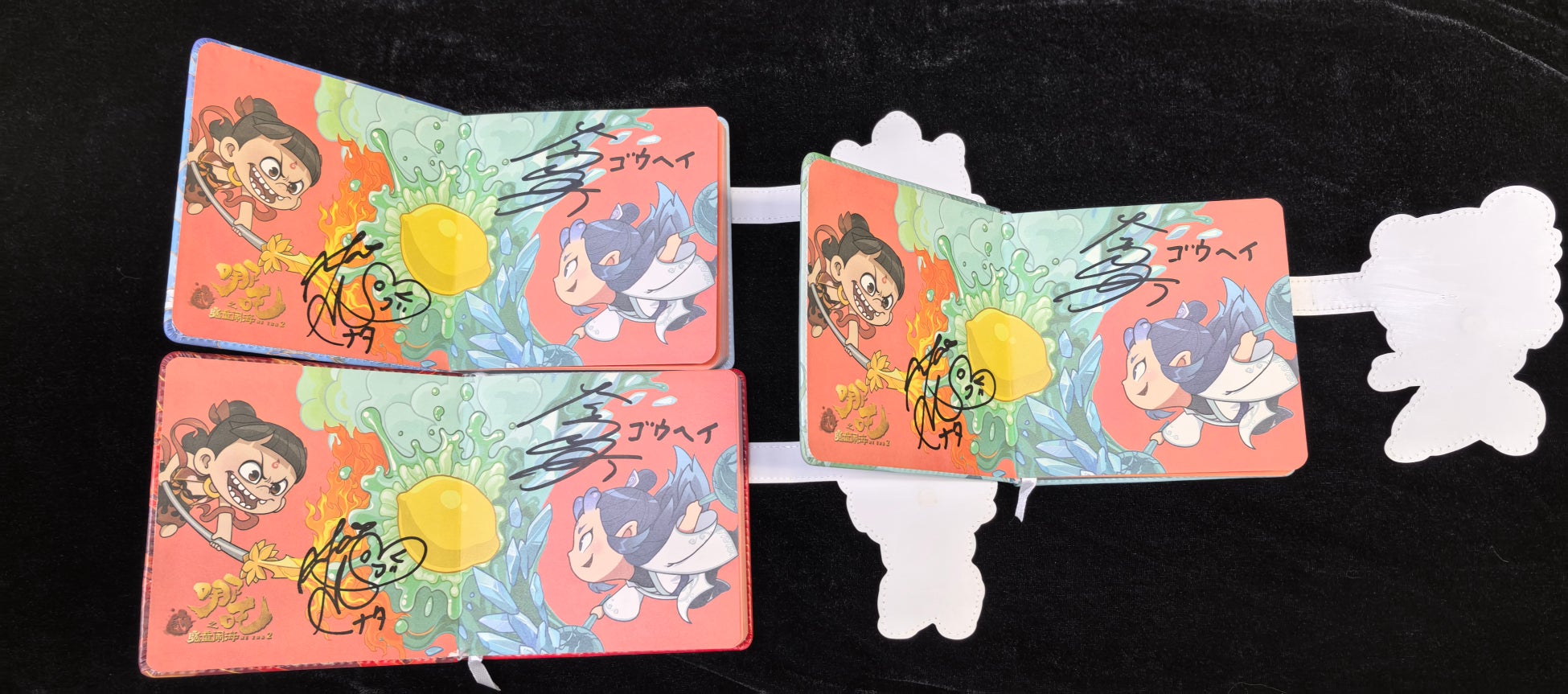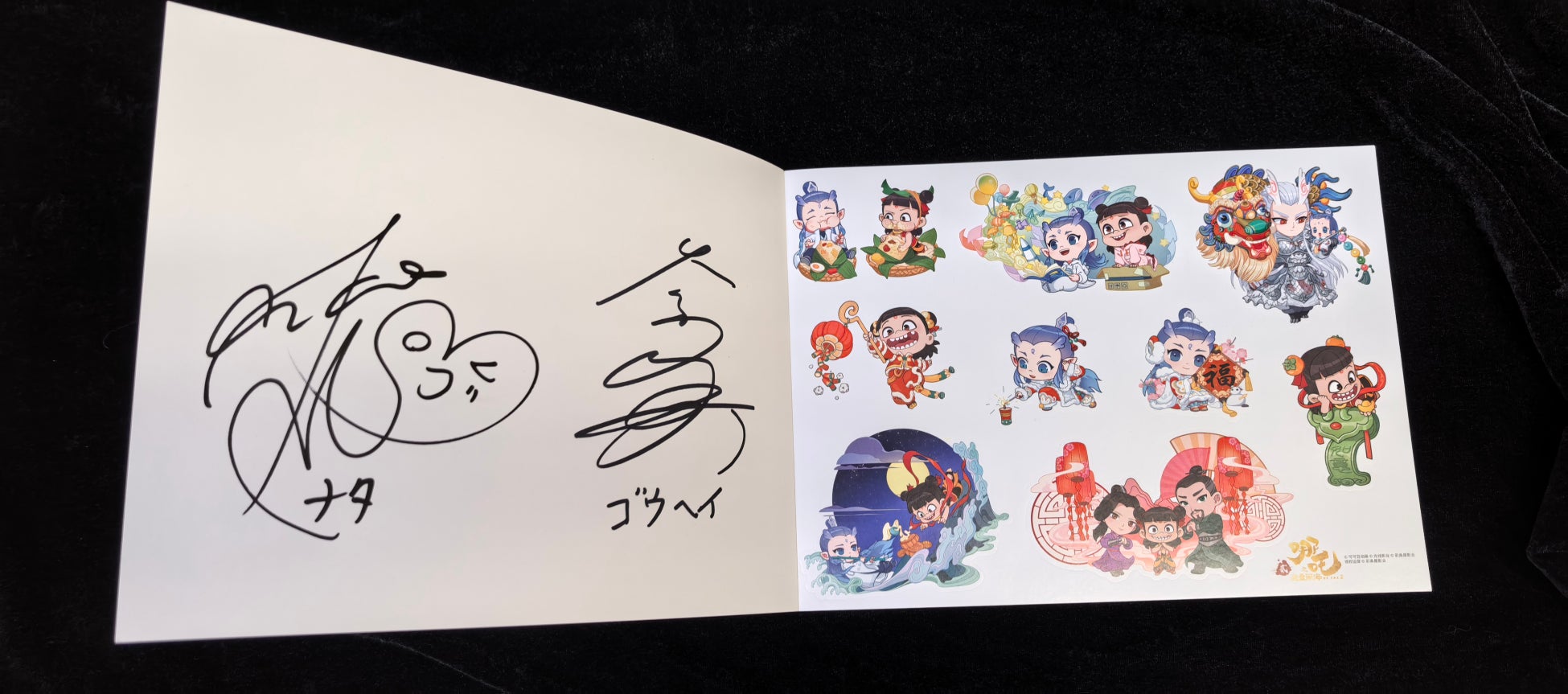 ・各グッズに、哪吒(ナタ)役の田村睦心、敖丙(ゴウヘイ)役の大塚剛央の2名のサインが入っています。