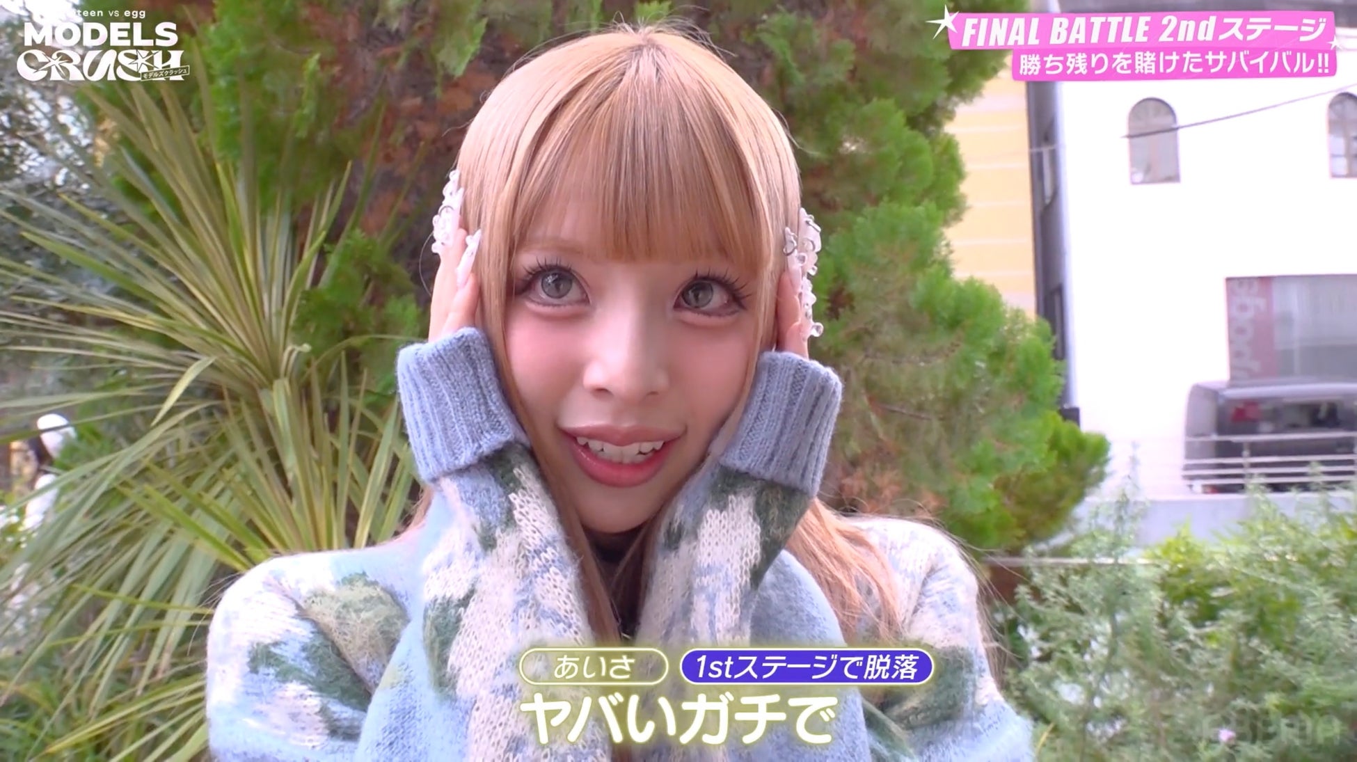 そして、互いに2勝2敗で迎えた12月9日(火)放送の#7では、ステージごとに脱落者が出るサバイバル形式のファイナルバトルがスタート。最後まで勝ち残ったチームが勝利となるファイナルバトルでは、番組と並行して行われた二誌合同の専属モデルオーディション『Popteen & egg 二誌合同専属モデルオーディション』の合格者も参戦。1stステージでは、『Popteen』モデルと『egg』モデルがペアを組み、制限時間30分以内に撮影したスナップ写真で審査される「街角スナップバトル」が行われ、ここまで個人ポイント2位だった『egg』モデル・あいさが脱落する波乱の展開となりました。