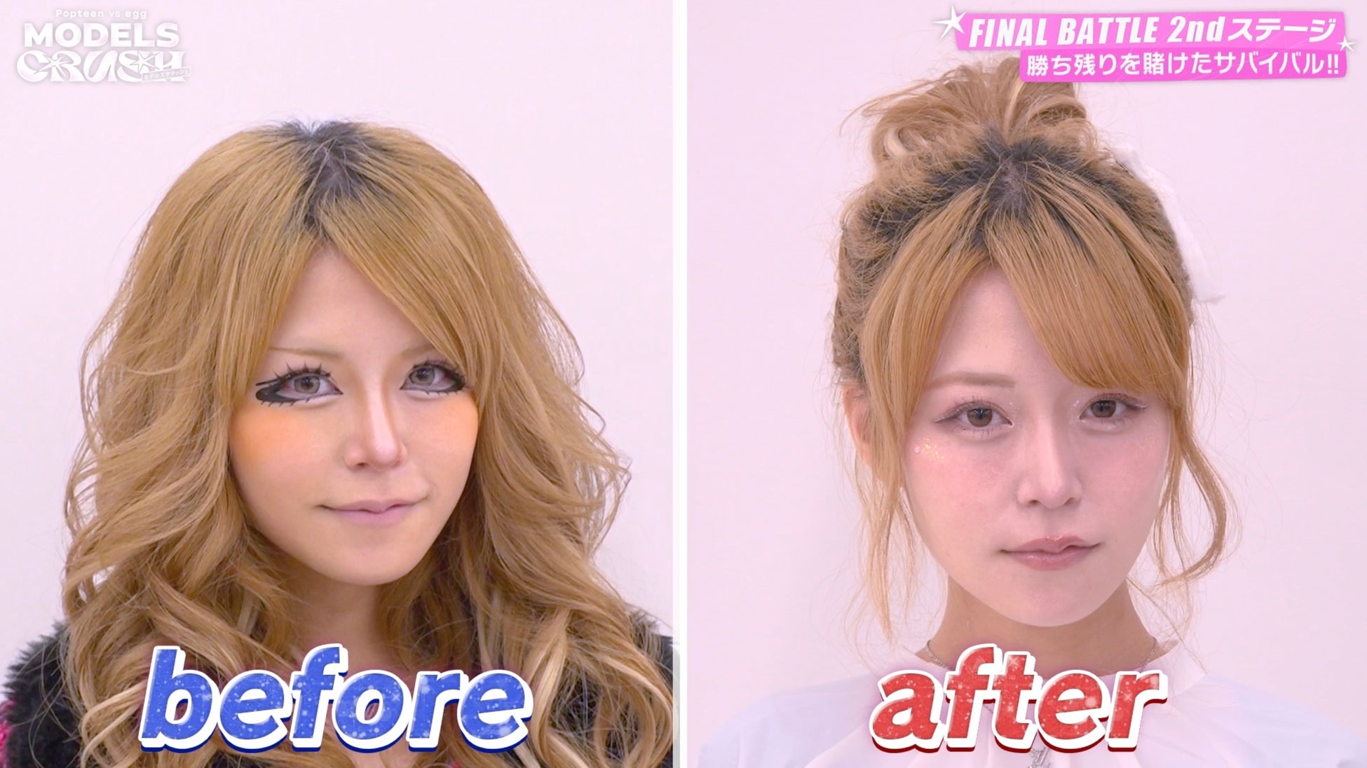 続く2ndステージでは、雑誌ごとに2人1組のペアを組み、脱落した相手チームのメンバーをモデルに“それぞれの雑誌風”ヘアメイクを完成させる「モデルトレードメイクバトル」で対決。『Popteen』モデルを“egg風”に、『egg』モデルを“Popteen風”に変化させて、その完成度を美容系YouTuber・ヒョクが審査。モデルたちのこだわりやメイクテクが披露され、まったくテイストの違うヘアメイクで変貌を遂げた両紙モデルたちに、視聴者から「すごい個性出てめっちゃいい」「メイクうますぎ!」「モデルの子ってメイク変えても似合うんだな」「別人みたい」など、驚きの声が続出しました。