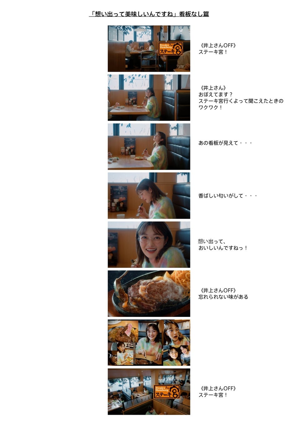 質問1.今回のTVCMではステーキ宮の思い出を語るシーンがありましたが、井上さんのステーキ宮での思い出を教えてください。