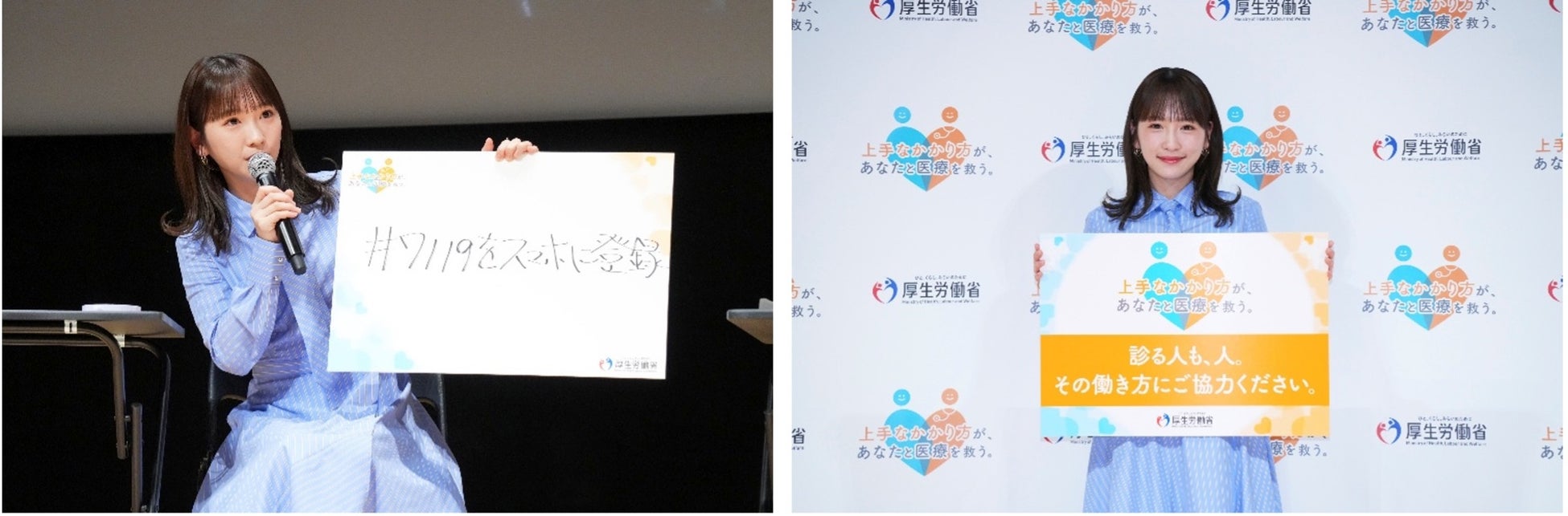 最後にこの日来場していただいたみなさんへのメッセージをフリップにお書きいただきました。川栄さんは「#7119をスマホに登録」とフリップに記入。川栄さんは「私もそうでしたがいざという時は、パニックになってどうしたらいいか分からなくなってしまう人も多いと思いました。まずはスマホに『#7119』を登録しておいていただけたら、いざという時の自分の安心材料になると思います。ぜひ、皆さん今日登録してもらえると嬉しいです。」とコメントし、ご自身が出演するCMでもPRしていることに触れながら、イベントにご来場いただいたみなさんに向けて「上手な医療のかかり方」の準備として日頃からできることを紹介してイベントを締めくくりました。