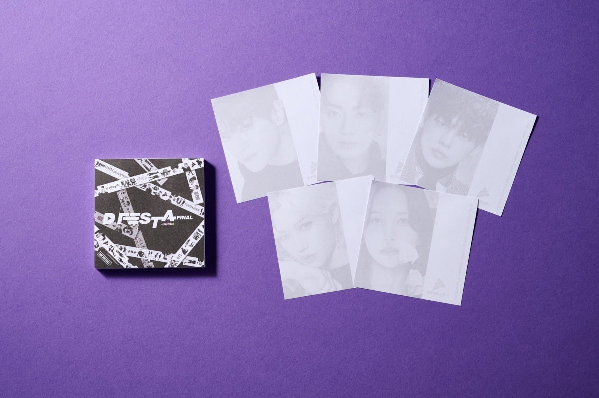 フォトブックでは、楽屋やバックステージなど、展示会場では見られなかったD’FESTAの様々な瞬間を細かく垣間見ることができ、初公開となるLIGHT CAGE撮影シーンとD’FESTAのテープカットセレモニー、記憶の部屋でメンバーたちが交わした楽しい瞬間がすべて盛り込まれた写真も掲載。