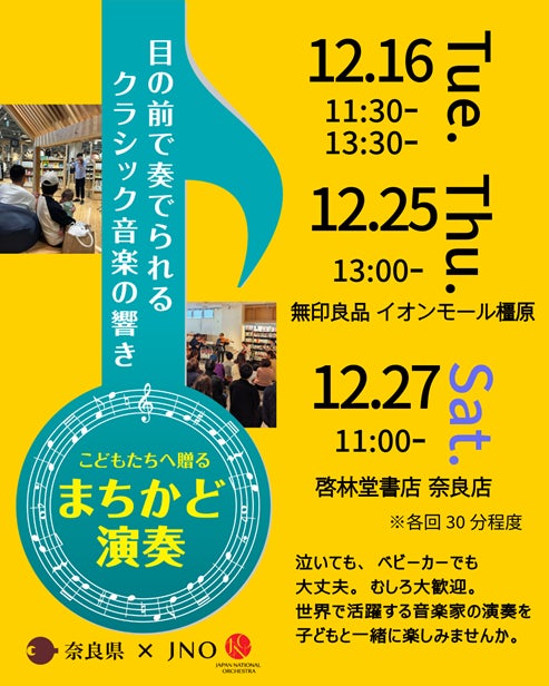 本事業は、世界的に活躍するJapan National Orchestra (JNO)と奈良県が協力し、県内のこども達を中心に、音楽を通じた特別な体験をお届けする事業です。