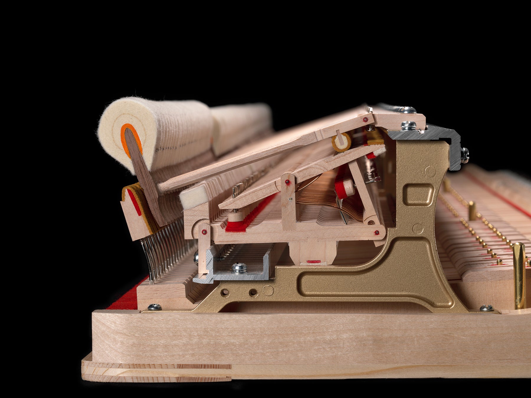 「CFX」の開発で培ったノウハウを活かし、打鍵された力が漏れなく伝わるよう各パーツの接点部を最適化しました。新形状の部品を採用し、初動の摩擦を低減するなど随所に新技術を投入。特に弱く打鍵した際、指に吸い付くような滑らかなタッチを実現し、微細なニュアンス変化をコントロールできるようになりました。
