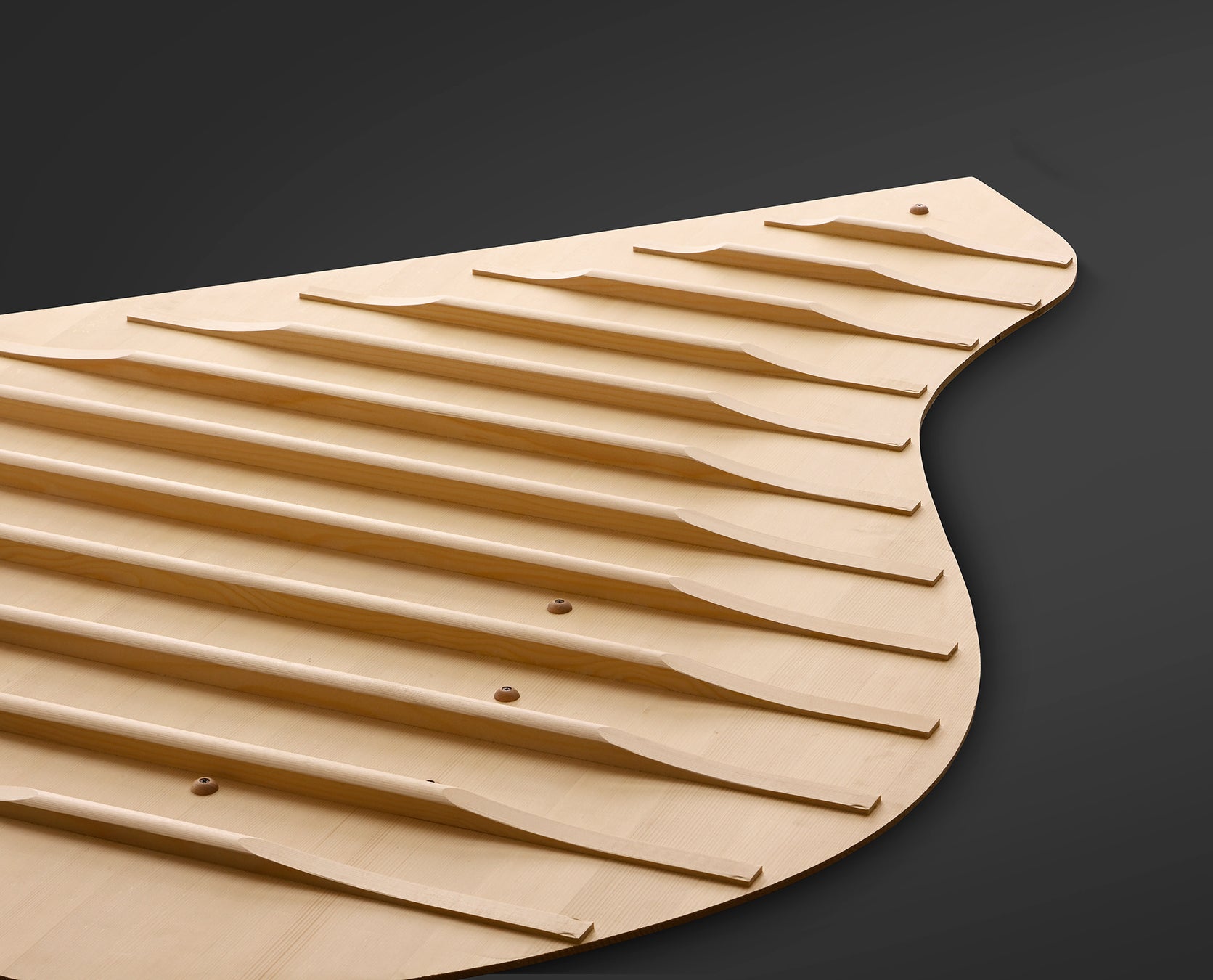 軽さと強さを両立した振動効率の高い響板にするため、「CFX」の開発で生み出された新たな湾曲構造を採用しました。さらに、espressivoのコンセプトである「表情豊かな演奏」を追求し、細かな調整や最適化を施しました。深みのある低音域と充実した中・高音域が、奏者を包み込む立体的な響きを作り出します。