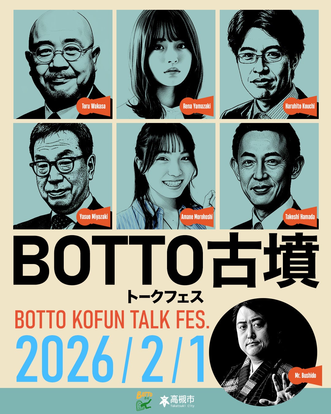 高槻市では「高槻市に行けば、好きなことに没頭できる」というテーマのもと、グルメ、歴史などのジャンルを絞り、その分野が好きな人に対し深くプロモーションするプロジェクト「BOTTOたかつき」を展開しています。今回はブームの”古墳”にフォーカス!同市所在の国史跡「今城塚古墳」と同所が真の陵墓とされる謎の多き「継体大王」をテーマにしたトークイベント「BOTTO古墳トークフェス」を令和8年2月1日(日曜日)に東京・六本木で開催することが決定しました(YOUTUBE LIVEで配信予定)。