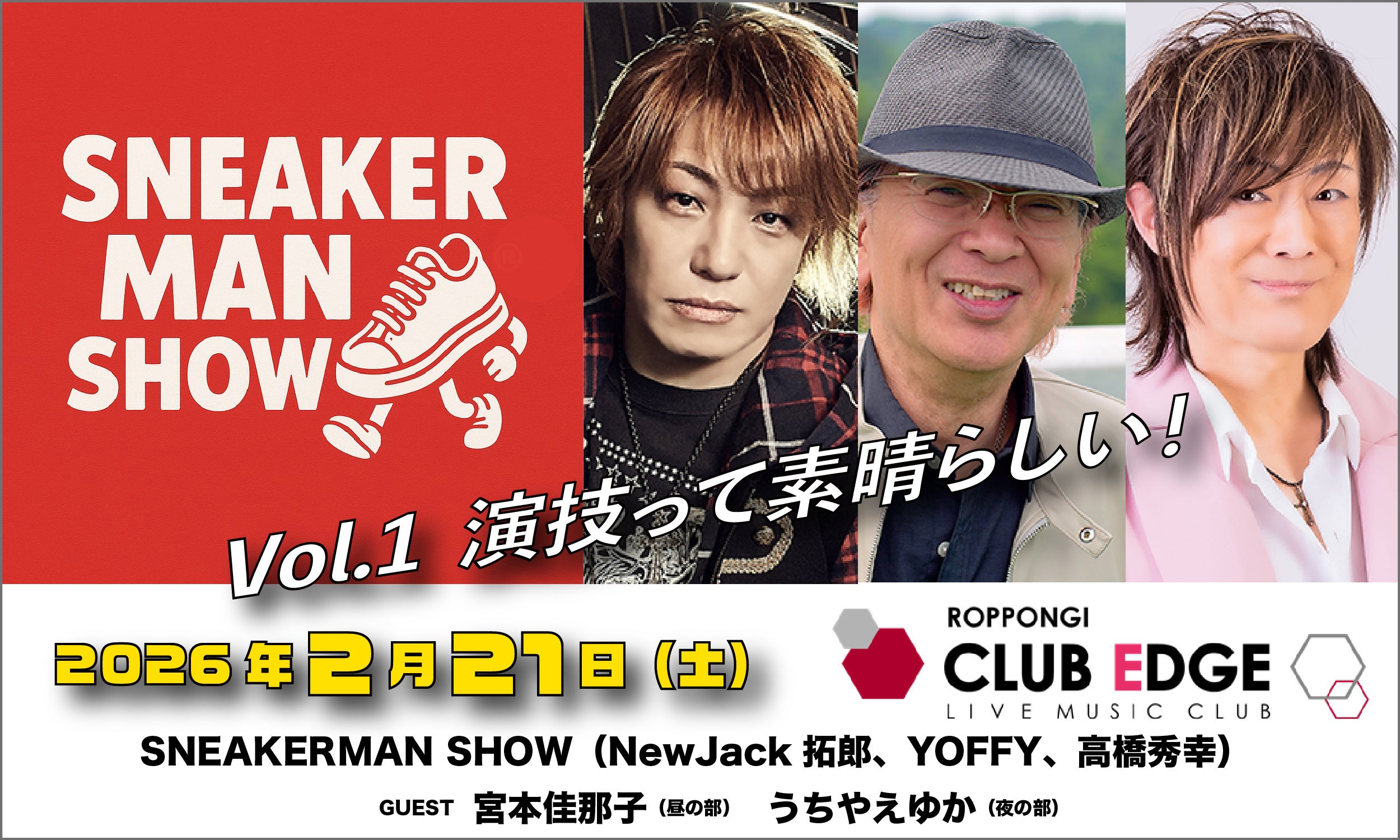 株式会社ショーマンズ(所在地:東京都⽂京区、代表取締役:貞⽅祥)は、特撮ソングやアニソンのシンガーによる朗読劇「SNEAKERMAN SHOW Vol.1 演技って素晴らしい!」を2026年2月21日(土)に六本木CLUB EDGEにて上演いたします。